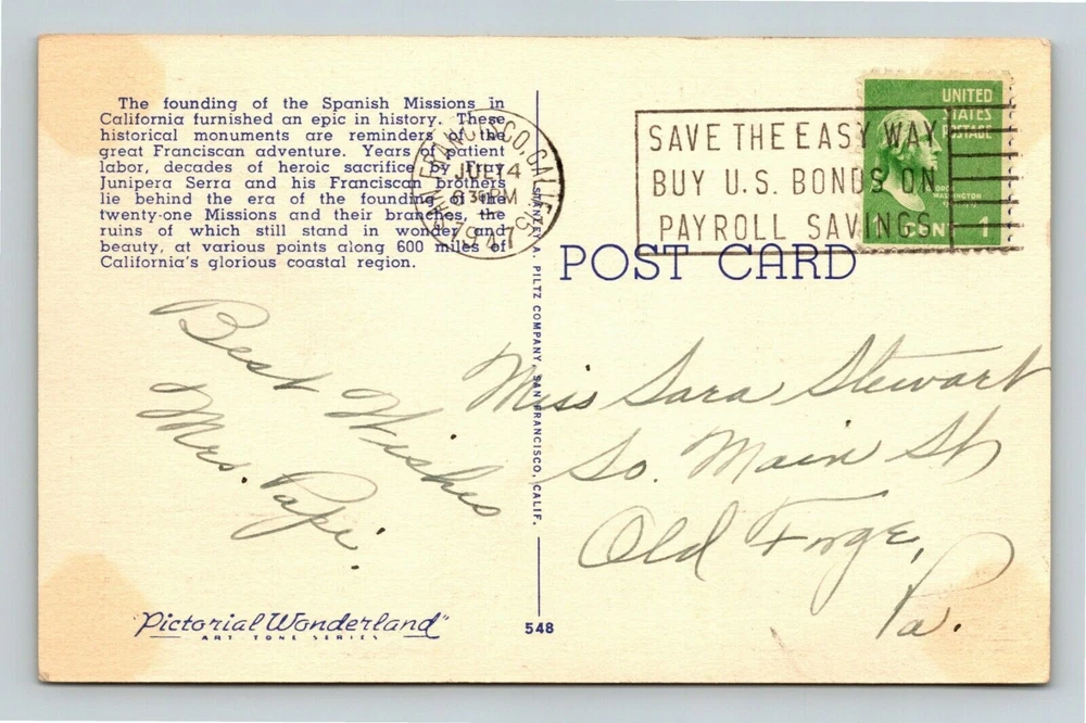 Greetings and Salutations! Welcome to Vintage Postcard Memories Postcard Size: Standard Vintage 3 1/2 by 5 1/2 (Unless Otherwise Noted in Title) USE THE EBAY PHOTO MAGNIFIER Examine photos carefully for condition and detail. Shipping & Handling USA: $0.99 USPS First Class International : $1.49 USPS International First Class Please add $0.10 for each additional on same invoice . CHECK OUT OUR 1,000 NIGHTLY AUCTIONS ALL STARTING AT JUST $0.79 All Postcards are mailed in a protective plastic sleeve. Placed inside a sturdy white 16pt cardstock photo mailer. A DO NOT BEND sticker is applied. We aim to ship within 24 hours of payment, Monday through Friday. All Postcards are mailed USPS First Class Letter (no tracking.) Please allow 7-10 Days for your postcard to arrive. 3-4 weeks Internationally We do our best to answer any questions or correct any problems should they arise within 24 Hours. Your Support Means the World to Us. Thank You for Choosing Our Small Business!