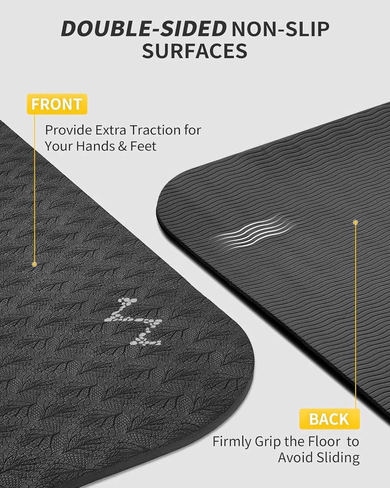 1. This yoga mat is a game-changer! The extra-wide 6mm thickness provides amazing cushioning for knees and joints, making workouts so comfortable. I love how spacious it is—no more slipping off during poses. Perfect for yoga, Pilates, and home workouts, plus it stays grippy even when I sweat. Super durable and easy to clean. Fast shipping and great seller—highly recommend!