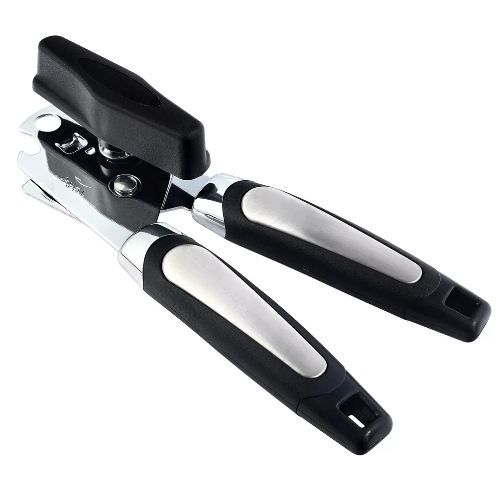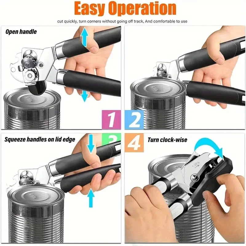 FEATURES: 【Smooth and Safe】- Protect & ensure your fingers safe, smooth and no sharp edge cover make your fingers more safety. Feel free and safe to use by yourself and even your children! 【High Quality Material】- Made from high-quality safe ABS resin stainless steel accessories TRP handle. Ensuring it won't rust or break over the time! The compact and smart design makes it a perfect fit for your kitchen drawers and cabinet. 【Ergonomic Design】- A big easy turning knob and a good comfortable crank handle makes cutting open cans effortless, fast and simple.Portable and Light Weight: Appropriate size makes this opener easy to carry when you are traveling or camping, it can open all kinds of round and oval cans. 【All-in-One Design】- The multifunctional can opener built-in bottle opener is designed for beer soda and other bottles with caps meet all your needs, The celebratory beer and bottle drinks can be easily opened with a simple pry with the hook. 【Easy to Carry & Store】- It is also convenient for you to hang or storage it with the hole on the handle. 【Stylish & Durable】- The heat-resistant, high-quality chrome head holds up to rigorous use. 【Easy to clean】- When clean the opener, you just need to rinse it under running tap water. SPECIFICATIONS: Material: ABS resin stainless steel accessories TPR handle Color: Black weight:160g /0.35lb Size: 19cm / 7.48 in PACKAGE INCLUDES: 1 * Smooth Edge Can Opener
