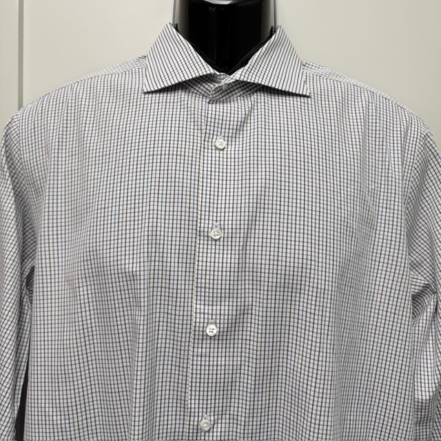 CANALI Luxury Dress Shirt Mens 42 16.5 White Blue Brown Check Italy 100% Cotton