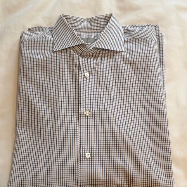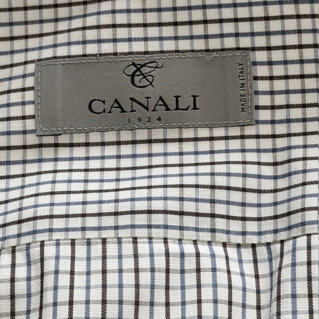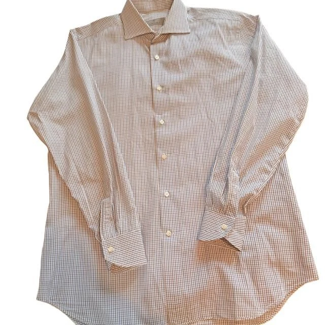 Vintage: No Material: 100% Cotton Color: White Closure: Button Neck Size: 16.5 in Personalize: No Garment Care: Machine Washable Type: Dress Shirt Fit: Regular Country of Origin: Italy Sleeve Length: Long Sleeve Occasion: Business, Casual Fabric Wash: Light Brand: Canali Size Type: Regular Collar Style: Spread Sleeve Type: Long Sleeve Chest Size: 42 in Department: Men Handmade: No Theme: Designer Accents: Button Neckline: Collared Features: Easy Care Top Cuff Style: Barrel Cuff Fabric Type: Woven Size: 16.5 Pattern: Check