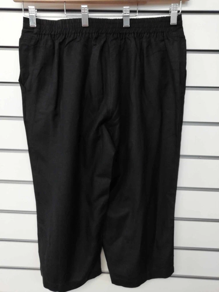 Type: Trousers Department: Women Size Type: Regular Brand: Capsule Size: 16 Fit: Regular Inside Leg: 19 in Style: Cropped Pattern: No Pattern Material: Linen Blend Leg Style: Wide-Leg Colour: Black