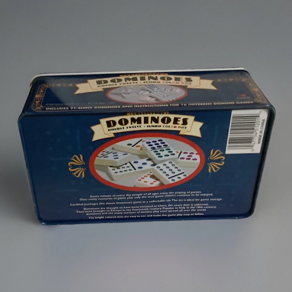 Type: Complete Game Game Title: Dominoes Features: Tin Box Game Type: Tile Game Brand: Cardinal