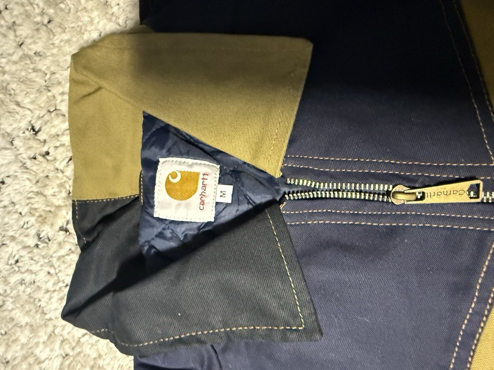 The Carhartt Patchwork Jacket is a stylish and unique reworked canvas bomber jacket for men in size M. Made from durable cotton material with a multicolor patchwork design, this jacket combines functionality with a trendy style. The classic bomber jacket silhouette and canvas fabric give it a rugged yet fashionable look, perfect for everyday wear. With the reputable Carhartt brand ensuring quality and durability, this jacket is a versatile addition to any man's wardrobe.