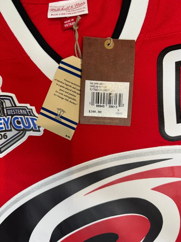 The product is a Mitchell & Ness Brindmore Jersey in size M celebrating the Carolina Hurricanes as Stanley Cup Champions. The jersey features a multi-color design and is designed for men who support the National Hockey League team. This officially licensed fan apparel is perfect for fans of the Carolina Hurricanes looking to show their team spirit and commemorate their Stanley Cup victory.
