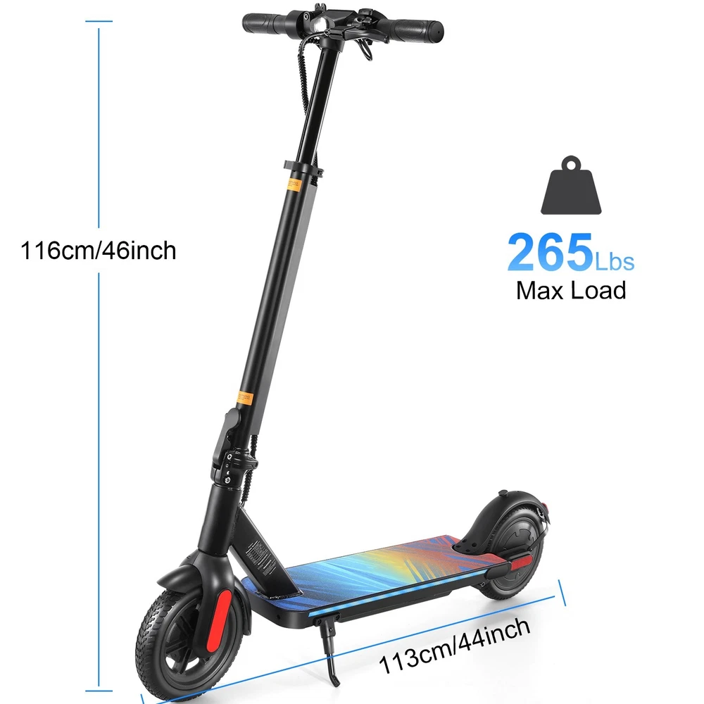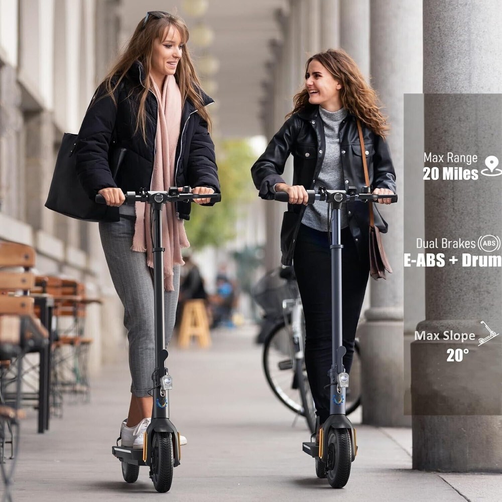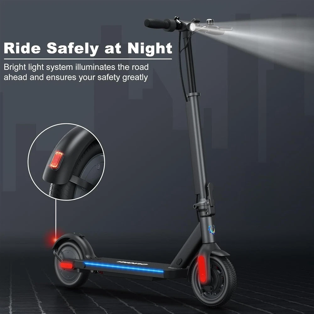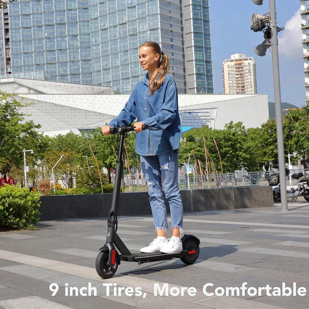 Product Description About this item Ideal Commute Partner: Caroma electric scooter is equipped with a 350W rear-wheel motor that delivers up to 630W of powerful power, which makes the scooter reach max speed 20 mph and ride on 20° max slope easily. Thanks to the 285Wh large capacity battery and superior battery management system, you can reach travel range up to max 20 miles. Caroma electric scooter adults can take you anywhere in the city and is also the perfect solution for the last mile of your commute Comfortable and Safe Riding: Auto Triple Lighting System(automatic headlight, taillight & pedal light) lights up road of night riding. Adjustable height handlebar (40" - 46") fits for teens and adults. 9" honeycomb solid tires are explosion-proof, anti-puncture and self-healing. Rear Shock Absorber brings up comfortable riding experience. Dual braking system(EABS & Drum braking) make sure riders can safely stop scooter in seconds Intelligent APP Control: Connect the mobile app to the electric scooter's Bluetooth. You can control speed mode, cruise control, headlight and pedal light. At the same time, you can record the data of each ride, so that you can easily enjoy riding LED Display and Three Speed Modes: The LED display shows real-time speed, battery life, speed mode and cruise control. With multifunctional button console, riders can easily control headlight, switch speed mode, activate cruise control. In order to meet the different needs of use from teens to adults, the electric scooter is equipped with 3 speed gears: 9.3 mph/15.5 mph/20 mph Folding Portable Design: This adult electric scooter features an convenient one step folding system, and the weight of the electric scooter is only 34.7 lbs. The folded size is 44.5" x 18.5" x 19.7". It's great convenience for storage and portability, you can take it on the subway, bus and trunk of car Tip: Actual range is affected by different loads, road conditions, temperature conditions and riding habits.