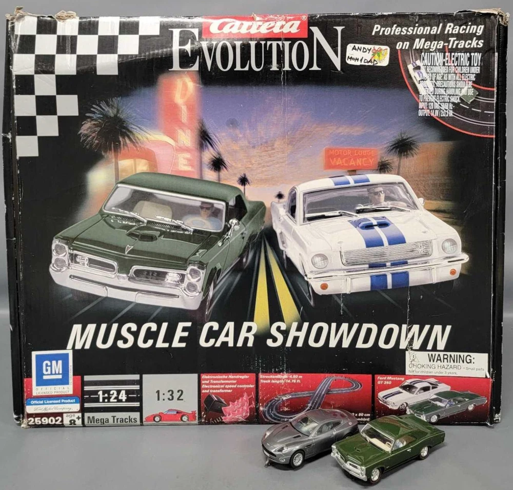 SEE OUR OTHER GREAT COLLECTIBLE ITEMS IN STOCK RIGHT NOW! Combined shipping rate available!!! SEE BELOW (POINT 2) FOR DETAILS AND INSTRUCTIONS ON COMBINING SHIPPING. IN THIS SALE: BRAND: CARRERA MODEL: THE BOX STATES ***MUSCLE SHOWDOWN*** THIS SET, I BELIEVE, IS INCOMPLETE AS IT SHOULD HAVE 2 CONTROLLERS BUT ONLY HAS 1, SO I AM UNSURE WHATE ELSE IS MISSING, SO I WILL LIST WHAT IT DOES COME WITH AND YOU DECIDE: PONTIAC GTO SLOT CAR JAMES BOND ASTON MARTIN SLOT CAR (ORIGINAL SET SHOULD HAVE HAD A MUSTANG) 1X CONTROLLER POWER CORD ACCESSORIES SUCH AS BEND RAILINGS AND PILLARS FOR ROAD ELEVATION TRACK STRAIGHTS X13 TRACK STRAIGHTS X6 TRACK CURVES X8 TRACK STRAIGHT WITH POINTS X1 SOME OTHER BITS AND BOBS. IT HAS A CARRERA BOOKLET WHICH SEEMS TO BE FOR A DIFFERENT SET COMES IN ORIGINAL BOX WHICH DOES HAVE QUITE A BIT OF WEAR/CREASES/CRUSHING/TEAR ETC PLEASE SEE PHOTOS. AS SEEN IN PHOTOS. WE H AVE SUPPLIED PICTURES OF THIS ITEM, WHICH YOU CAN ZOOM IN ON, SO THIS MODEL IS BOUGHT AS SEEN IN THE PHOTOGRAPHS. YOU DECIDE ON THE ITEM CONDITION, IT IS YOUR CHOICE AND WHAT YOU DECIDE ON WHAT YOU SEE. ITEM IS AS DESCRIBED AS YOU ARE MAKING THE DECISION. ******************************************************* POINT 1: CONDITION GRADING SYSTEM BOUGHT AS SEEN IN PHOTOS. Please note: the photos shown are of the actual item to be sold. So please look at the photos carefully before placing a bid/purchasing. In any photo, if there is glare or white spots, then that is due to the photography, they do not exist on the item. If the item is standing in the photo. It stands. Sometimes you might need to be patient, but it stands. POINT 2: COMBINE SHIPPING Follow the instructions below to get the combined shipping rate: 1/ Add the models you want to your shopping cart. 2/ Go to your shopping cart or purchase history. There is a drop down menu. Select REQUEST TOTAL and then COMMIT TO BUY. 3/ We then send an invoice with the combined ship rate. Note the above process does not work on some ebay phone apps, so if it does not, log in to ebay.com via the web browser on your phone and do not use the app. IF THIS DOES NOT WORK FOR YOU. PAY FULL PRICE AND WE CAN ISSUE A REFUND FOR THE EXCESS SHIPPING, AS LONG AS YOU PURCHASE THE MODELS IN ONE TRANSACTION AND NOT SEPARATE ORDERS. POINT 3: PAYMENT / TERMS OF TRANSACTION If you commit to buy this item please ensure you pay for the item within 24 hours. A case will be opened if payment is not received in that timeframe. POINT 4: SHIPPING We ship within 36 hours of payment being received (consider that our post office is closed on Saturdays and Sundays). We ship our figures via USPS First class mail. Each figure is individually wrapped in bubblewrap and then card and sent in protective mailers. USA USPS first class mail within the U.S.A. INTERNATIONAL We ship using the Ebay Global Shipping Program. No other method. On checkout page you should see the price they charge. We have ZERO control over their charges or timings. POINT 5: SENDING US MESSAGES & FREQUENT “ANSWERS” TO QUESTIONS A/ No need to message us and ask us to pack your item carefully. We will. That’s how we are in business and have over 20,000 positive feedbacks. Also, you do not need to tell us how to pack an item. B/ Once we receive positive feedback, we leave positive feedback for you. We will not leave feedback before you do. C/ If you message us and ask about the condition. We will refer you to look at the photos as mentioned above. D/ If this item is part of a discount offer, please do not message us and ask about “how to get the offer”. If you have a problem with the process, please contact ebay customer service, as it is their system not ours. E/ If you have a genuine inquiry we will respond as soon as possible, usually within a few hours. F/ Please don’t message us and complain about late delivery. Message USPS. We get the package to them within 36 hours of your order (EXCEPT FOR SATURDAYS AND SUNDAYS, WHEN THE POST OFFICE IS CLOSED). We do our best. Sometimes USPS can be delayed, so complain to USPS, we do not drive their trucks. The tracking info will give you updated info. OT be held responsible for their actions. Do not buy the item if you do not trust in your postal service. G/ Tracking numbers are automatically uploaded once we drop off at the post office. So no need to ask us for the number. You will get the tracking info as soon as we get the item scanned at the post office. POINT 6 : SCAMMERS If USPS tracking says your item has been delivered to the address you have on file with ebay. They have! No ifs, no buts. They delivered. I believe USPS, so contact your post office. Not us. So no refund!!! POINT 7 : RESOLVING AN ISSUE Contact us to resolve any issues and we will do our best to ensure your satisfaction. If there is a physical issue with the item you have received, I.e damage, we will need to see photos of the item and the packaging, so we can see the damage before we can begin discussing resolutions Look out for our other figures for sale right now, in our COLLECTIFUL store.