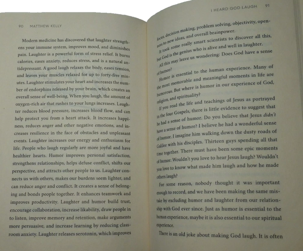 CASE OF 64 BRAND NEW BOOKS Paperback edition. NEW UNOPENED CASE. Only shipping to lower 48 contiguous states. Authored by Matthew Kelly, New York Times Best Selling Author. Ideal for Anyone seeking inspiration, spiritual awakening, inner peace. This book is ideal for anyone interested in having Better communication with Their Own God. Ideal for groups like AA, substance abuse, churches, therapists, etc. (Or for resale.) The words "God", "Lord", "Yahweh", "Adonai", "Christian", "Jesus" & "Christianity" appear, but no attempt is made to "convert" you to any specific religion. It's meant as a non-denominational worship guide. This is more of a "Self Help" type book with a Positive upbeat attitude about improving your life thru prayer to Your own God for Your own life and needs.