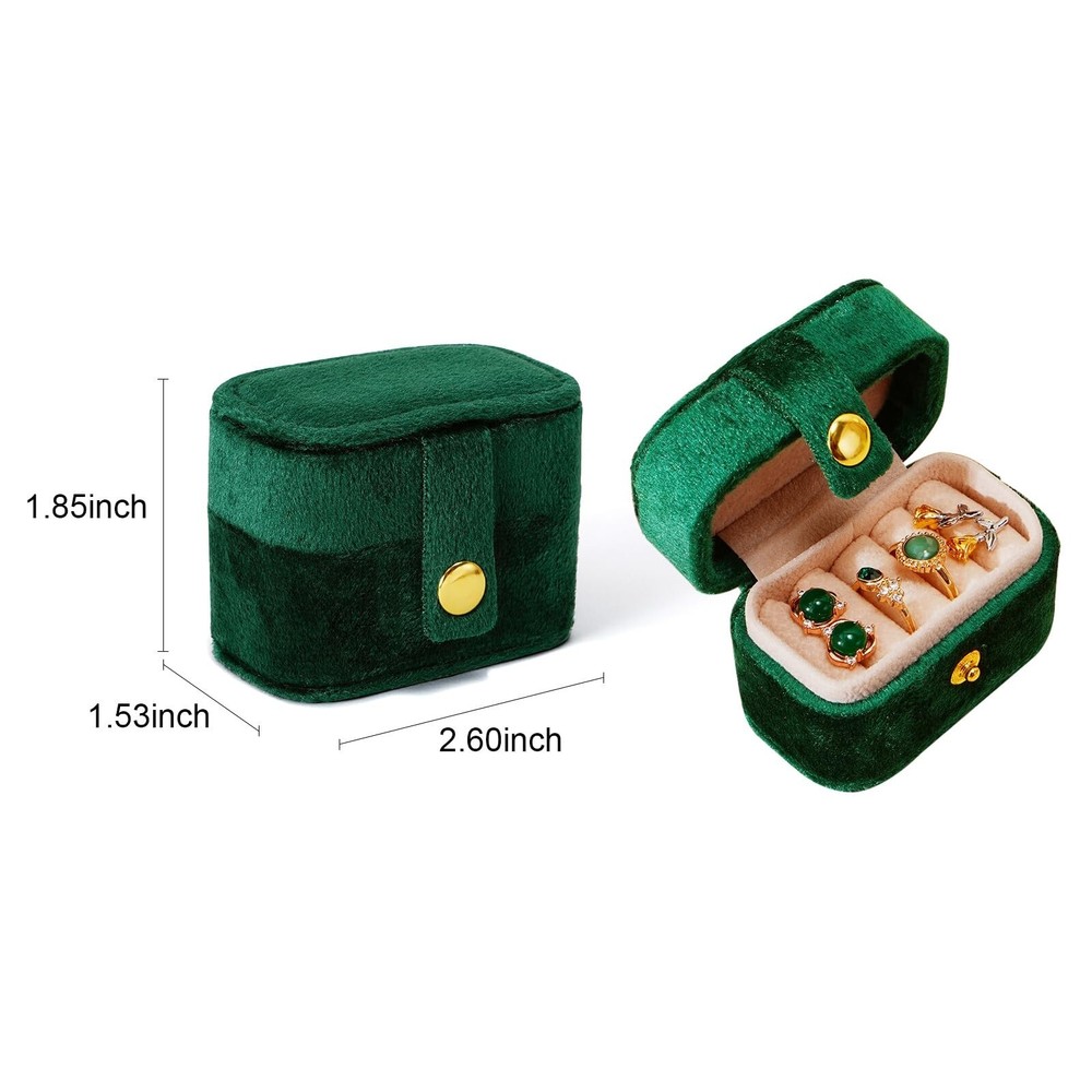 CASEGRACE Velvet Travel Jewelry Case - Portable Small Jewelry Ring Box Plush Velvet Ring Storage Case for Rings Earrings, Travel Essential Accessories for Women, Emerald - Buy Now with Fast Shipping! CASEGRACE Velvet Travel Jewelry Case - Portable Small Jewelry Ring Box Plush Velvet Ring Storage Case for Rings Earrings, Travel Essential Accessories for Women, Emerald Product Details Color: Emerald Brand: CASEGRACE Material: Leather Style: Modern Special Feature: Portable Recommended Uses For Product: Earring Product Dimensions: 2.6"D x 1.53"W x 1.85"H Target Audience: Women Finish Type: Fabric-lined Inner Material: Velvet Color: ‎Emerald Brand: ‎CASEGRACE Material: ‎Leather Style: ‎Modern Special Feature: ‎Portable Recommended Uses For Product: ‎Earring Product Dimensions: ‎2.6"D x 1.53"W x 1.85"H Target Audience: ‎Women Finish Type: ‎Fabric-lined Inner Material: ‎Velvet Number of Drawers: ‎2 Number of Compartments: ‎5 Jewelry Storage Type: ‎Jewelry Roll Number of Items: ‎1 Manufacturer: ‎CASEGRACE Occasion: ‎Engagement, Mother's Day, Wedding, Birthday Mounting Type: ‎Table Top Closure Type: ‎Button Item Weight: ‎2.39 ounces Country of Origin: ‎China Size: ‎Velvet Finish: ‎Fabric-lined Item Package Quantity: ‎1 Special Features: ‎Portable Batteries Included?: ‎No Batteries Required?: ‎No Date First Available: July 21, 2023 Key Features ✅ Jewelry Ring Storage Case: Small jewerly ring box design to meet your ring storage needs. Make your beloved rings or earrings easy to carry, also display your jewelries in a beautiful and elegant manner. ✅ Velvet Jewelry Ring Case: Adopt exquisite velvet which feels fluffy with graceful luster, soft lining provide the best protection for your beloved jewelry, button closure design makes it easy to open and close. ✅ Protable Size: 2.60*1.53*1.85inch, cute and small design make it easy to carry in your handbag or luggage, suitable for travel storage, business trip or daily use. Elegant and luxurious color adds a touch of simplicity to the plush velvet jewelry box, making the jewelry organizer show exquisite luxury. ✅ Multifunctional Ring Organizer: 5 ring roll can fix your rings or earrings storage well. With this Mini jewelry ring organizer, you will no longer worried about the rings or earrings lost while travling. ✅ Perfect Gift Ideal: Small jewelry box features a premium velvet touch softness and inviting designs, will be an ideal gift for Valentine's Day, Mother's Day, Thanksgiving, best Christmas gift for girls in this winter, birthdays and weddings for your mom, girlfriend, colleague or any other special women in your life. Product Description