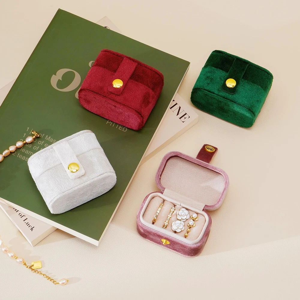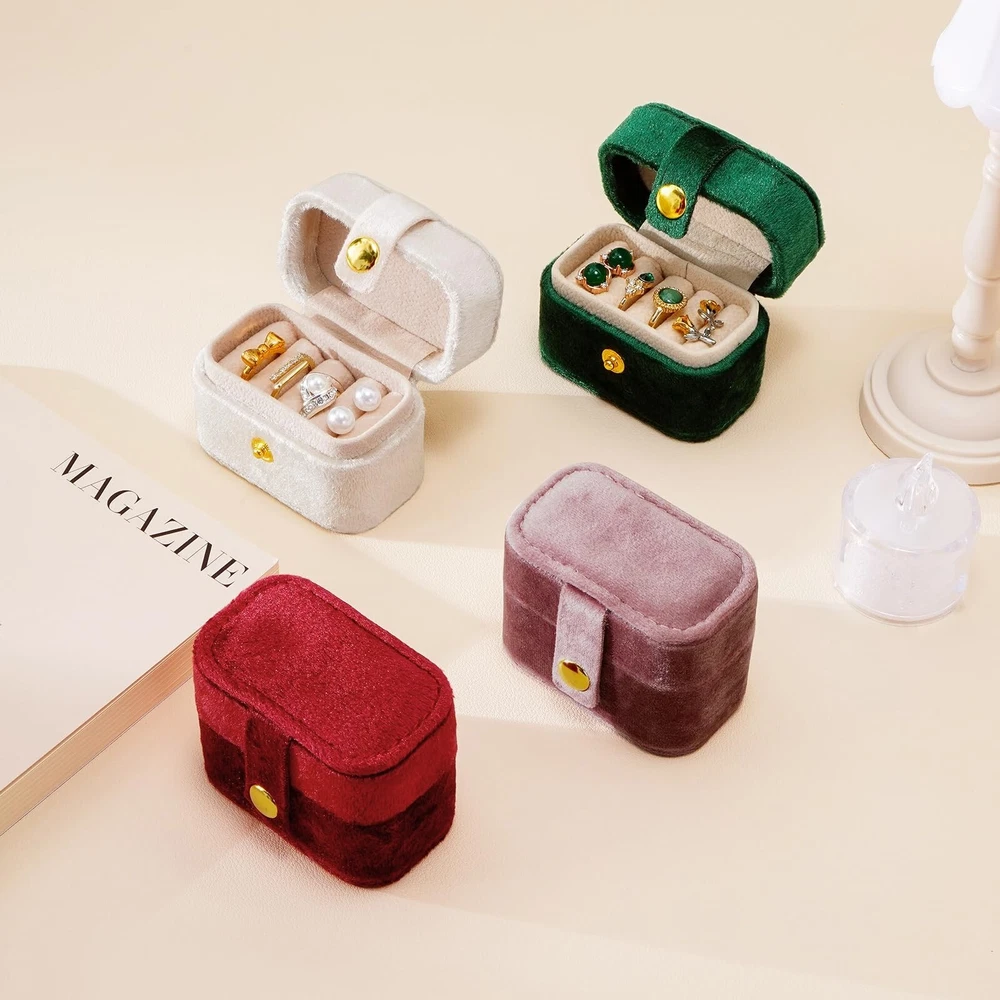 CASEGRACE Velvet Travel Jewelry Case Portable Ring Box Plush Storage Organizer
