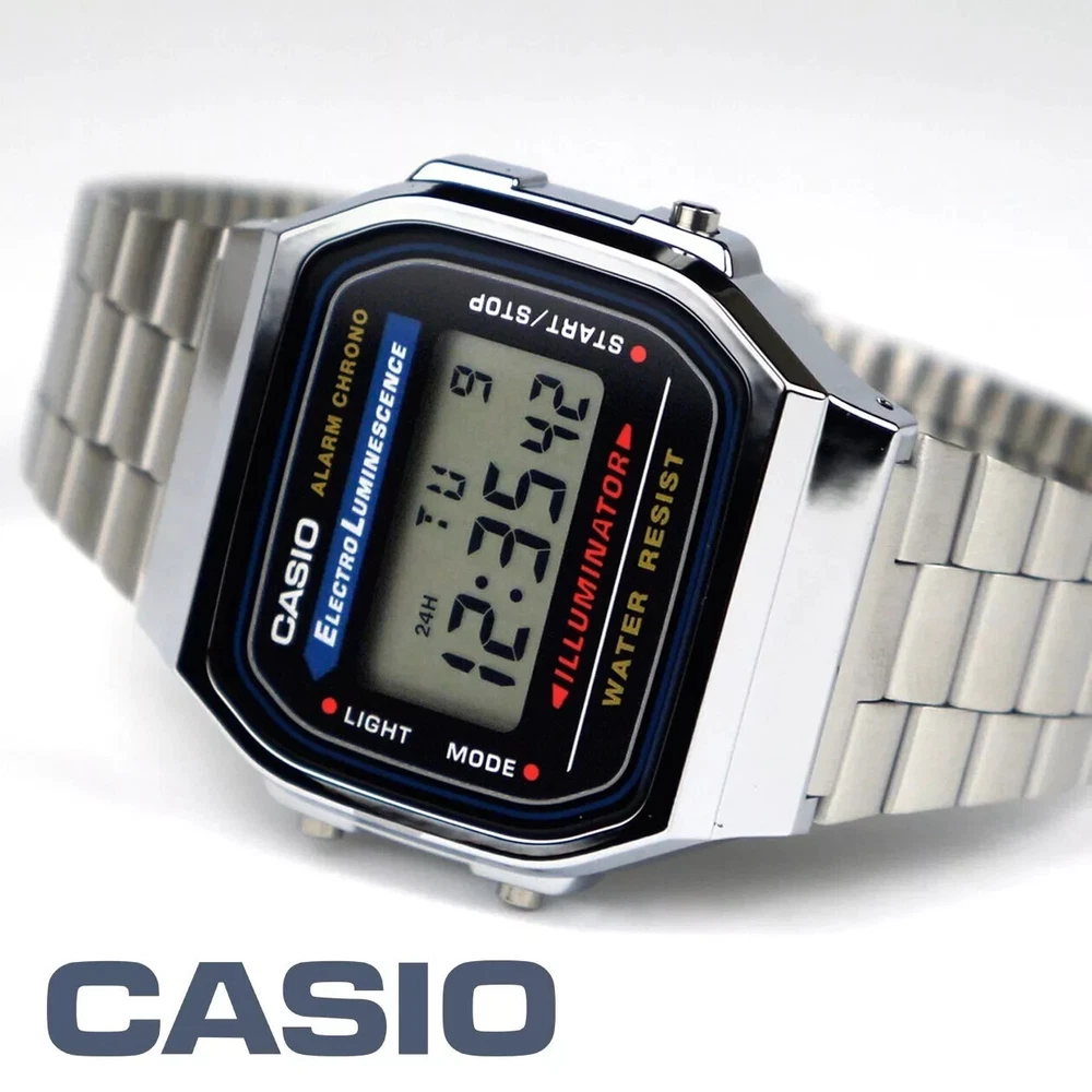 This Casio Classic wristwatch is a perfect combination of sport, casual, and classic styles. It features a digital display and is water-resistant up to 30 meters. The stainless steel band and case give it a sleek silver look that makes it suitable for both men and women. The watch has a quartz movement, reference number A168WA, and comes with backlight and alarm features. It is a great choice for those who want a reliable and stylish wristwatch.