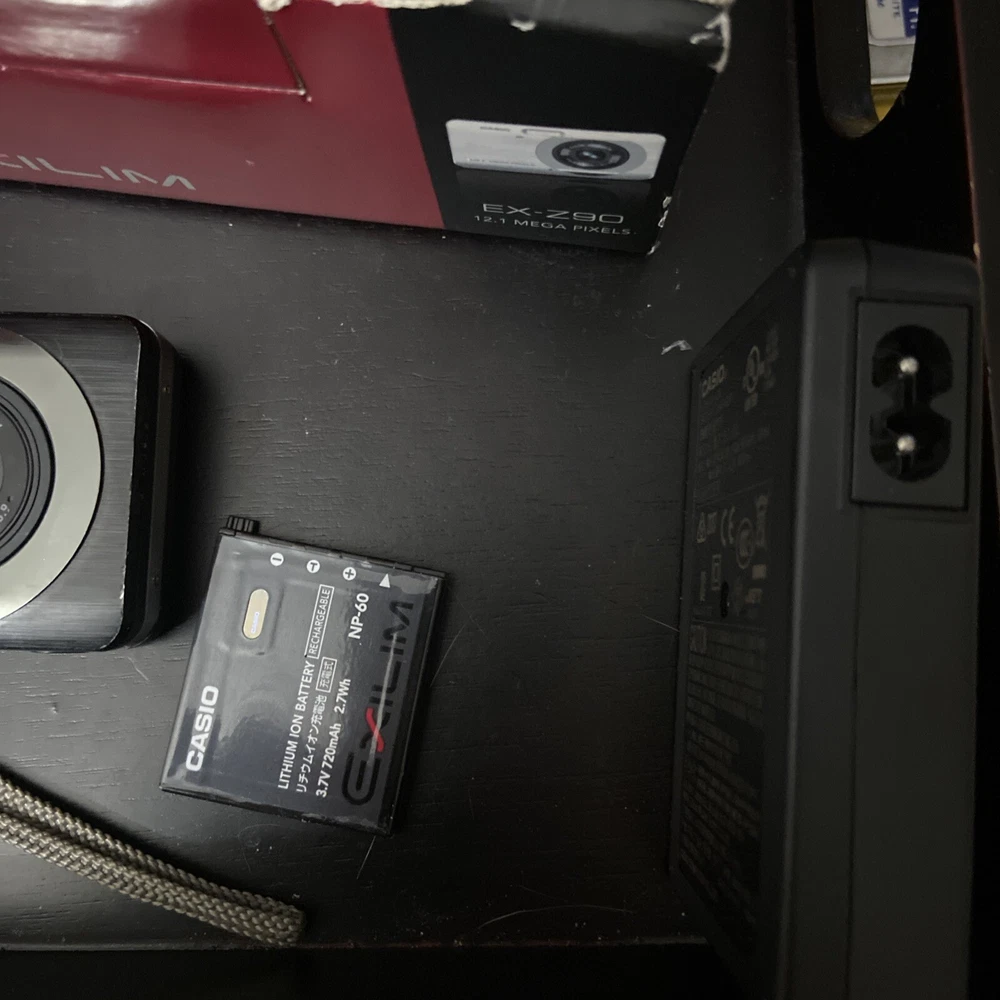 Camera works. Battery charger does not have cable that goes from charger to wall.