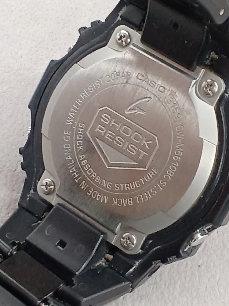 Bezel Color: Black Country/Region of Manufacture: Japan Dial Color: Black Customized: No Department: Men Seller Notes: “Good Condition” Reference Number: GW-M5610, GWM5610 Water Resistance: 200 m (20 ATM) Case Size: N/A Display: Digital Brand: Casio Model: G-SHOCK Type: Wristwatch Case Material: N/A Case Color: Black Band Material: Resin Movement: Quartz Band Color: Black Features: Date Indicator, Water-Resistant