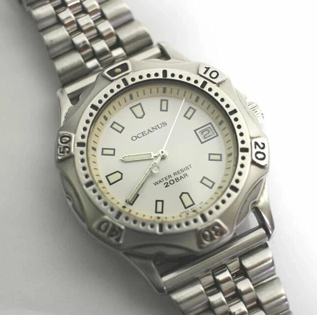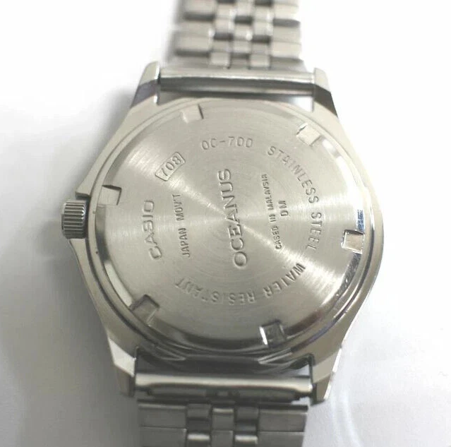 Band Material: Stainless Steel Band Color: Silver gtin13: N/A Department: Men Case Color: Silver Type: Wristwatch Gender: Men's Bezel Color: Silver Case Material: Stainless Steel Manufacturer Part Number: n/a Model: Casio Oceanus Country/Region of Manufacture: Japan With Papers: No Brand: Casio Reference Number: N/A With Original Box/Packaging: No Warranty: no Dial Color: White UPC: N/A Display: Analog Handmade: No Movement: Quartz Guarantee: no With Service Records: No