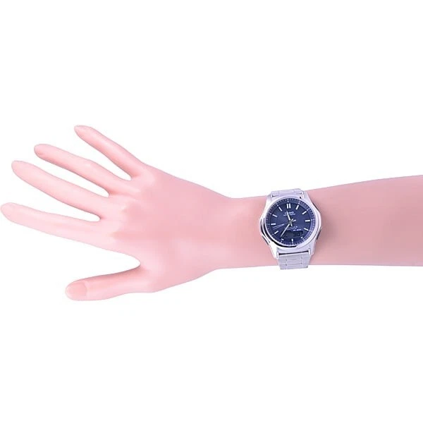 Movement: Quartz (Solar Powered) gtin13: 4971850966500 Dial Color: Blue Year Manufactured: 2010-Now Department: Men Style: Casual With Papers: Yes Water Resistance Rating: 50 m (5 ATM) Case Color: Silver Reference Number: WVA-M630D-2AJF Indices: Baton Indexes Band Color: Silver Case Material: Stainless Steel Watch Shape: Round UPC: 4971850966500 With Original Box/Packaging: Yes Bezel Color: Silver Customized: No Type: Wristwatch Display: Analog & Digital Modified Item: No Model: Casio Wave Ceptor Band Material: Stainless Steel Brand: Casio Water Resistance: 50 Metres / 5 ATM Features: 24-Hour Dial, Multiple Time Zones, 12-Hour Dial, Alarm, Atomic/Radio Controlled, Backlight, Date Indicator, Day Indicator