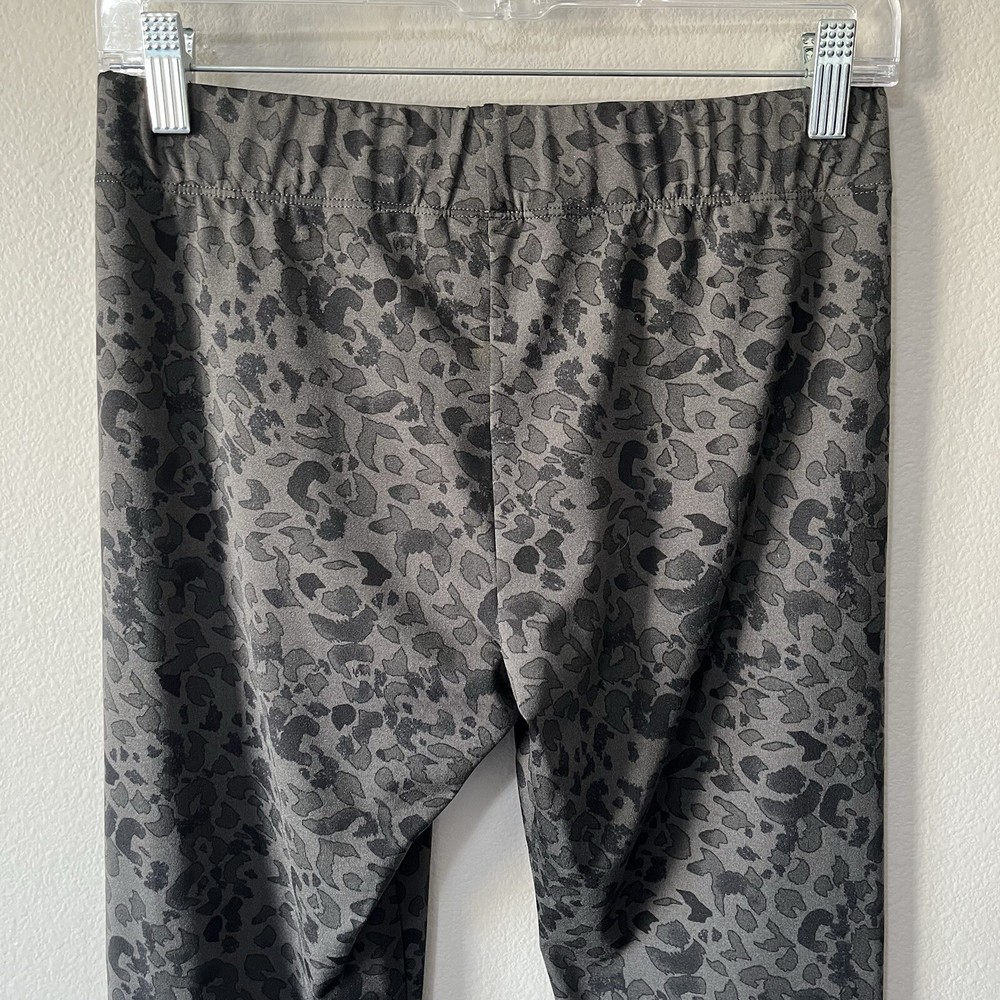 CAbi #3212 Tea Lounge Safari Leggings in a dark gray/black. Size small. Midrise. Elastic waistband. Stretch. Animal print. Skinny leg. Retailed for $99. Pre-owned, excellent condition. Mobwife, luxury, city, contemporary, travel. All measurements are approximate, not exact. Inseam: 29.5” Waist: 13.75” measured flat Rise: 9.25” Leg opening: 4” measured flat
