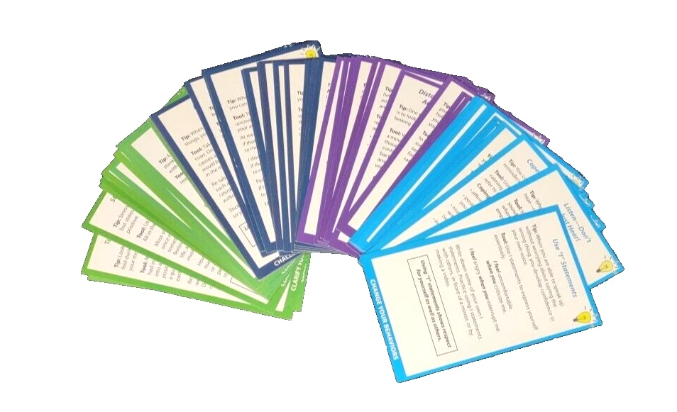 Relieve stress and calm anxiety with 55 quick and effective tips and tools. Each card features a short Tip, followed by a Tool, or short activity to put that Tip into practice. -Clarify Your Feelings -Challenge Your Thoughts -Change Your Behaviors -Calming Strategies