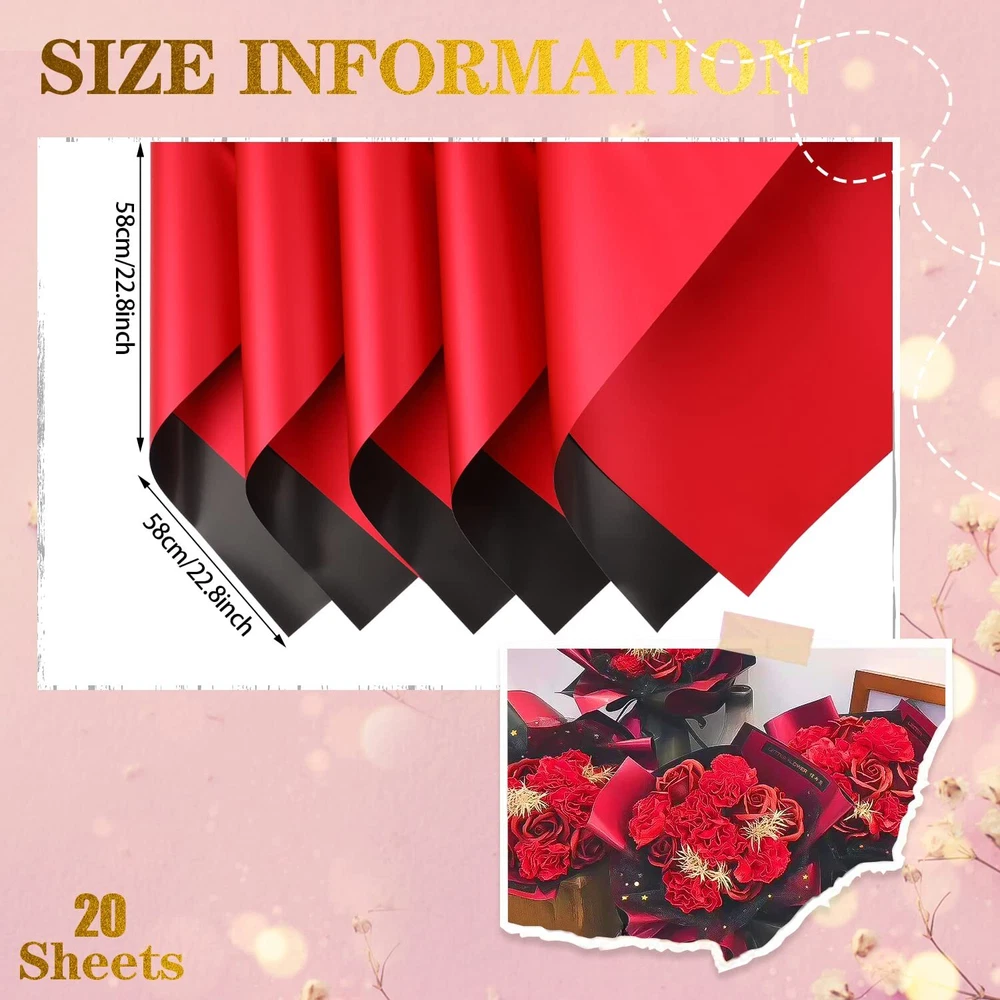 CCINEE 20 Sheets Double Sided Flower Wrapping Paper Waterproof Fresh Flower Packing Material Florist Bouquet Supplies DIY Craft Gift Packing, Red+Black Value Package: You will get 20 sheets two-color double sided flower wrapping paper(red + black). Perfect for fresh flowers wrapping. Elegant colors make your bouquet more beautifuland upscale.At the same time, enough quantity for you to use many times Waterproof Material: The fresh flower wrapping paper are made of high quality waterpoof material.So you don't have to worry about water when you're packing the bouquet. Size: The measurement of this paper is about 22.8*22.8inch/58*58cm.Large enough to pack a bunch of flowers without worrying about running out of paper Double Sided Colors: All florist wrapping papers adopte double sided and double colored design. The different colors on the front and back make the packaged bouquet more layere. Chic and elegant. A variety of colors are available for you to choose, which can also give you more imagination and creativity when packaging gifts Wide Application: Our flower wrapping paper is perfect for fresh flower wrapping, Bridal Shower, Wedding, Anniversary, Birthday Party, Holidays, Mother's day, Baby Shower, Mother's Day, Graduation gift wrapping and so on CCINEE 20 Sheets Double Sided Flower Wrapping Paper Waterproof Fresh Flower Packing Material Florist Bouquet Supplies DIY Craft Gift Packing, Red+Black Shipping We offer FREE shipping on all orders! We use a selection of shipping services such as UPS, FedEx, USPS etc. We only ship to the lower 48 states, no APO/FPO addresses or PO Boxes allowed. Local pickups and combined shipping options are not provided at this time. Return You can return a product for up to 30 days from the date you purchased it. Any product you return must be in the same condition you received it and in the original packaging. Please keep the receipt. Payment We accept payment by any of the following methods: PayPal Please pay as soon as possible after winning an auction, as that will allow us to post your item to you sooner! Feedback Customer satisfaction is very important to us. If you have any problem with your order, please contact us and we will do our best to make you satisfied. Contact Us If you have any queries, please contact us via ebay. We usually respond within 24 hours on weekdays. Please visit our eBay store to check out other items for sale! Thank you for shopping at our store.