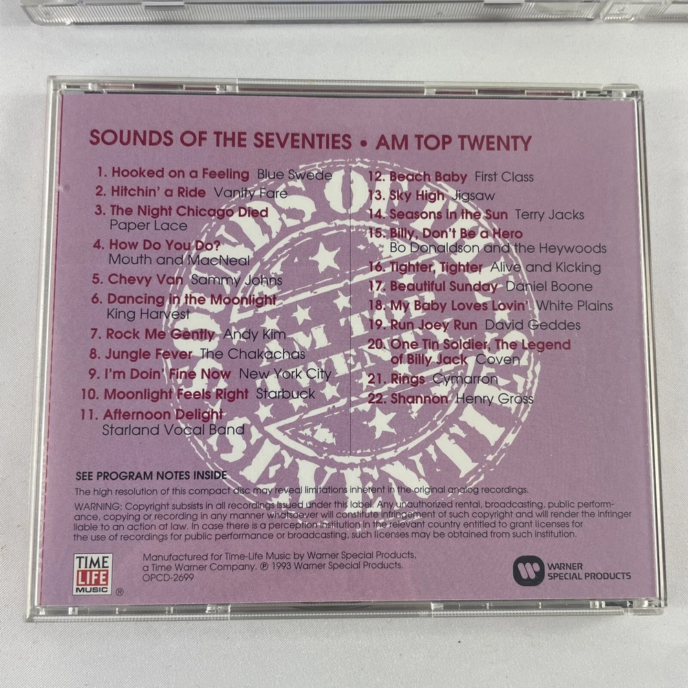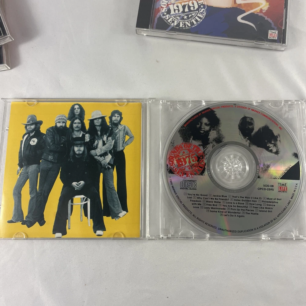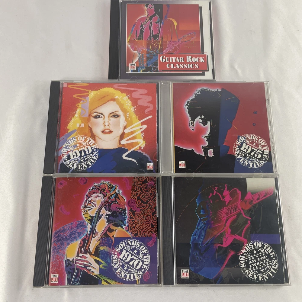 This CD lot features a collection of rock music from the 1970s, with a focus on guitar power and rock genres. The CDs come in a standard jewel case and have been graded as Very Good Plus (VG+), with some signs of wear and tear. The inlay and case conditions are also Very Good Plus (VG+), and the unit quantity is 5. The record label is Sound and the release title is Sounds of the Seventies. This CD lot is perfect for any music collector or fan of classic rock. Don't miss out on the opportunity to add this rare collection to your library.