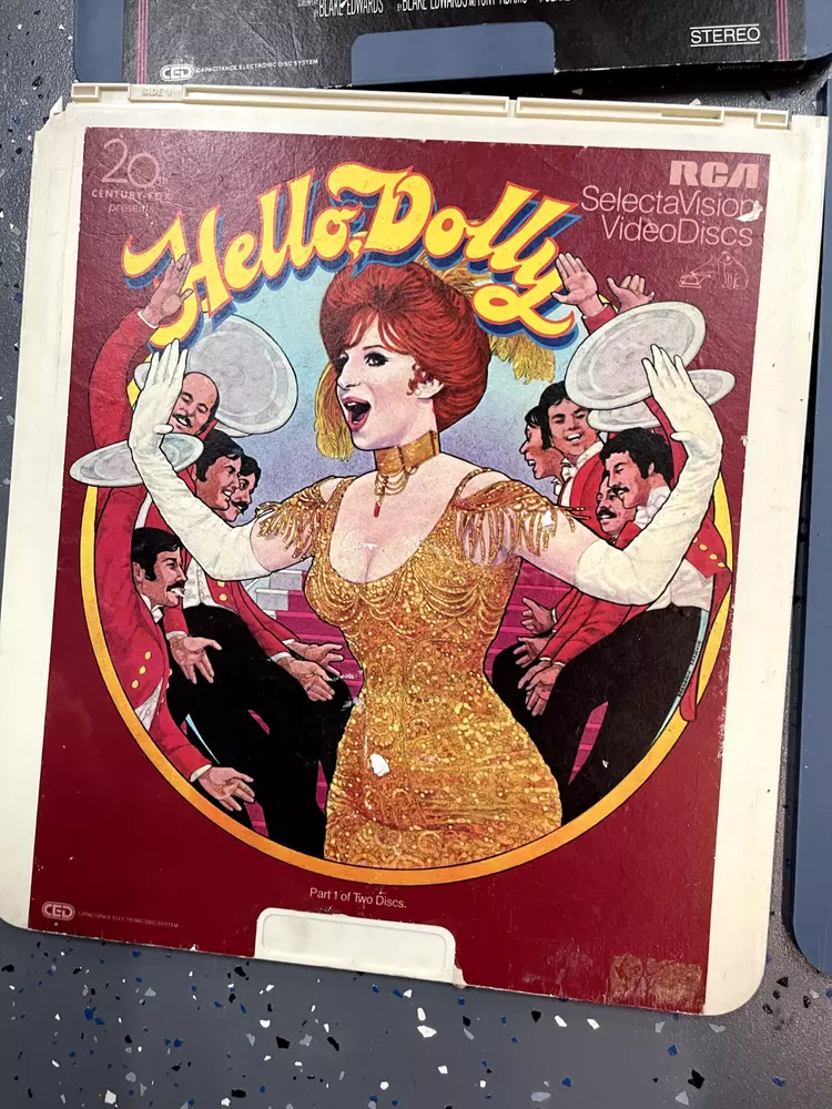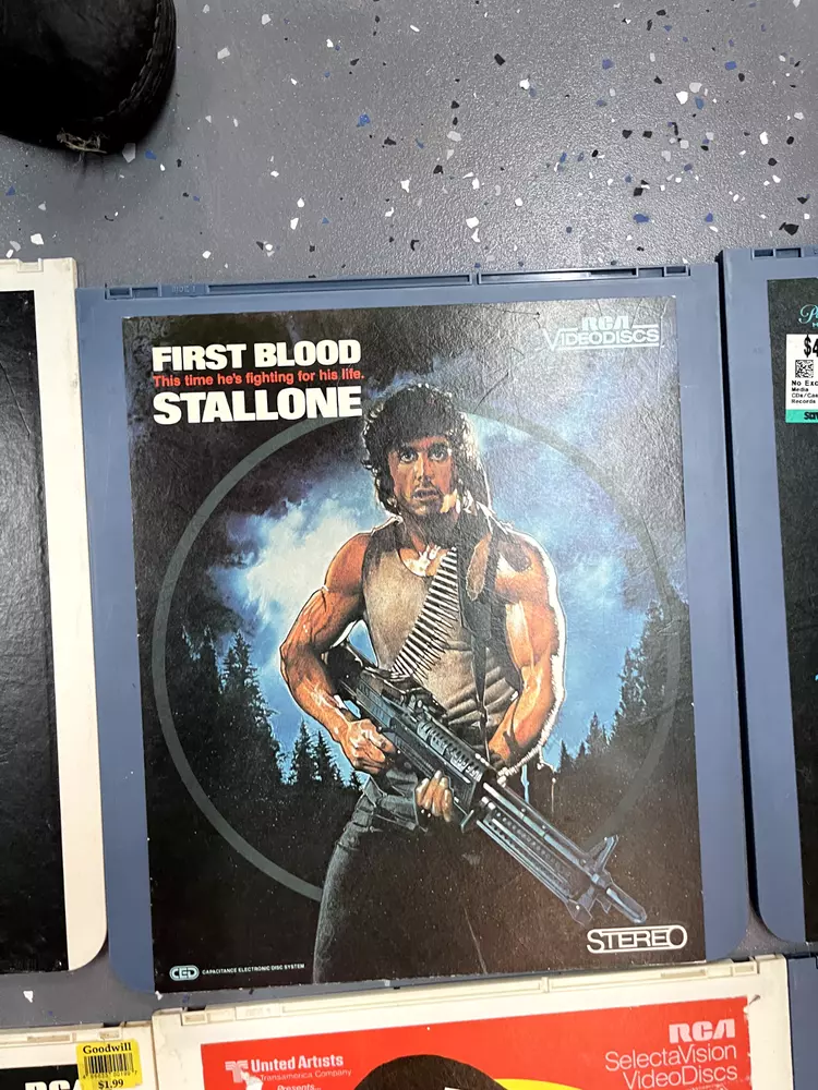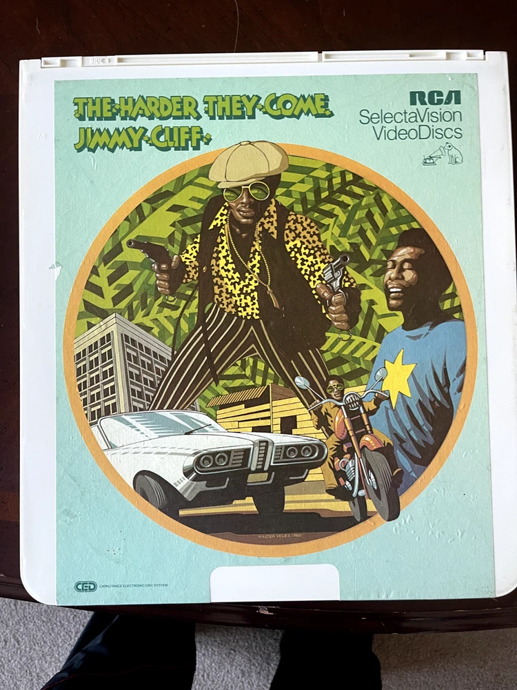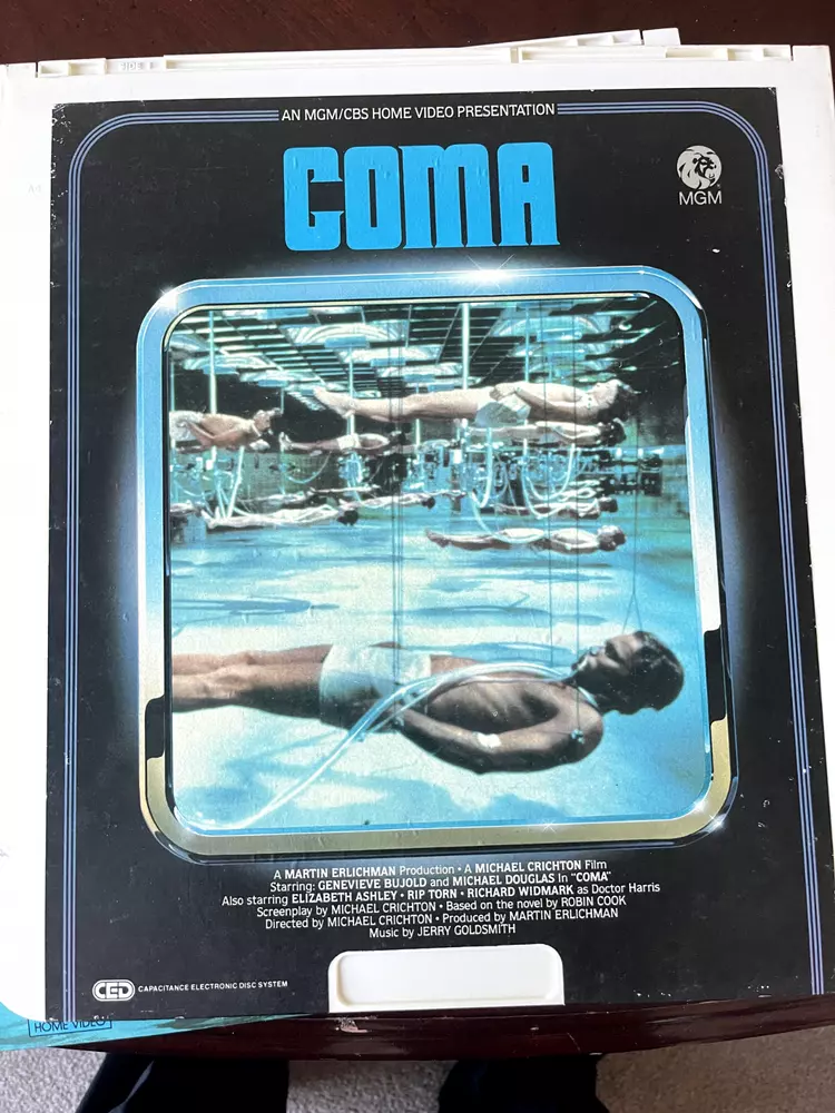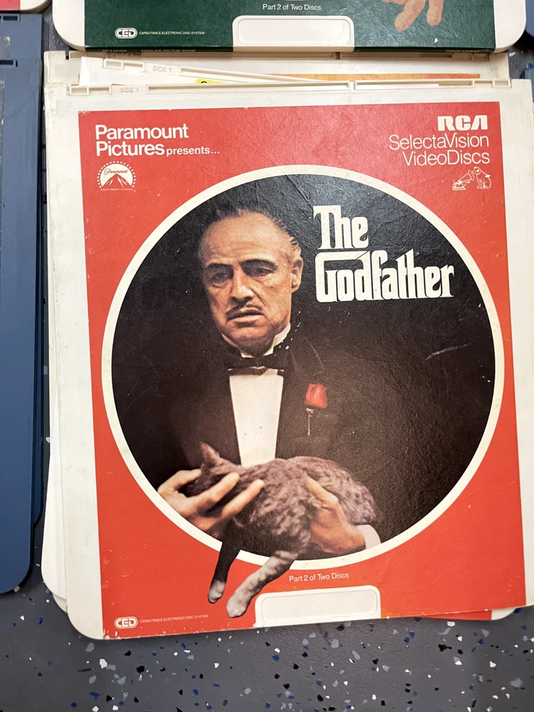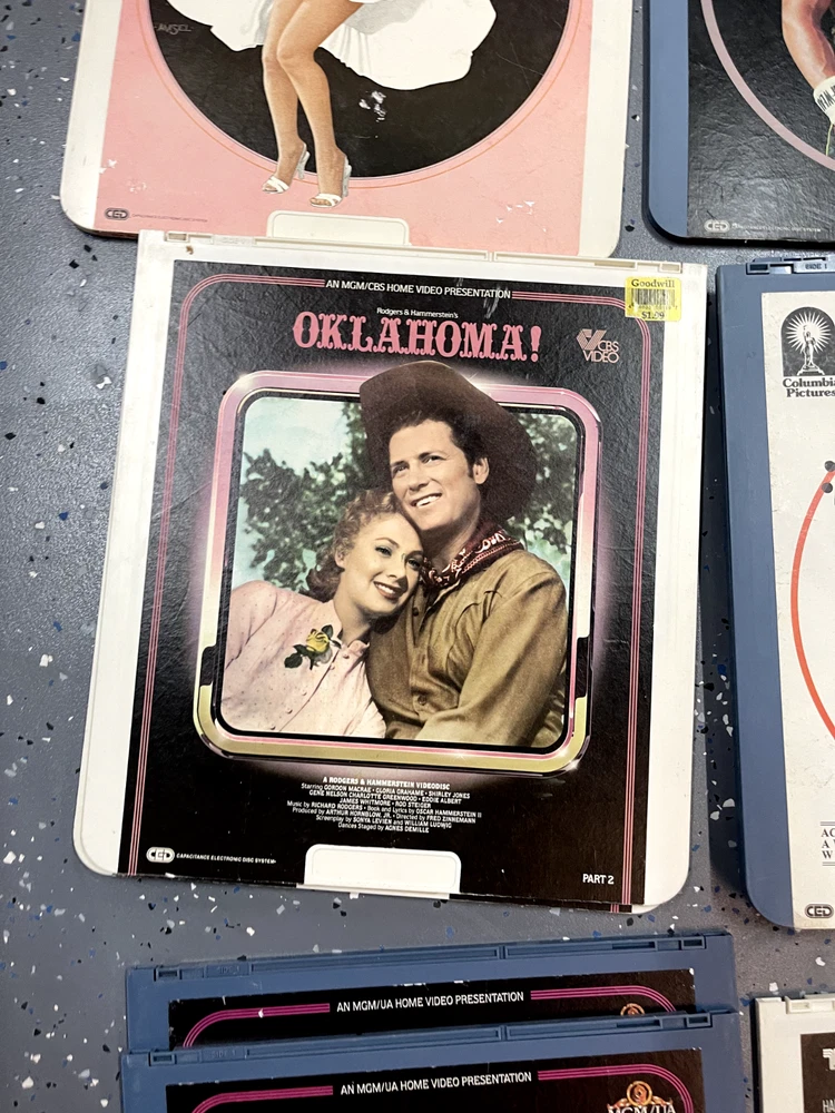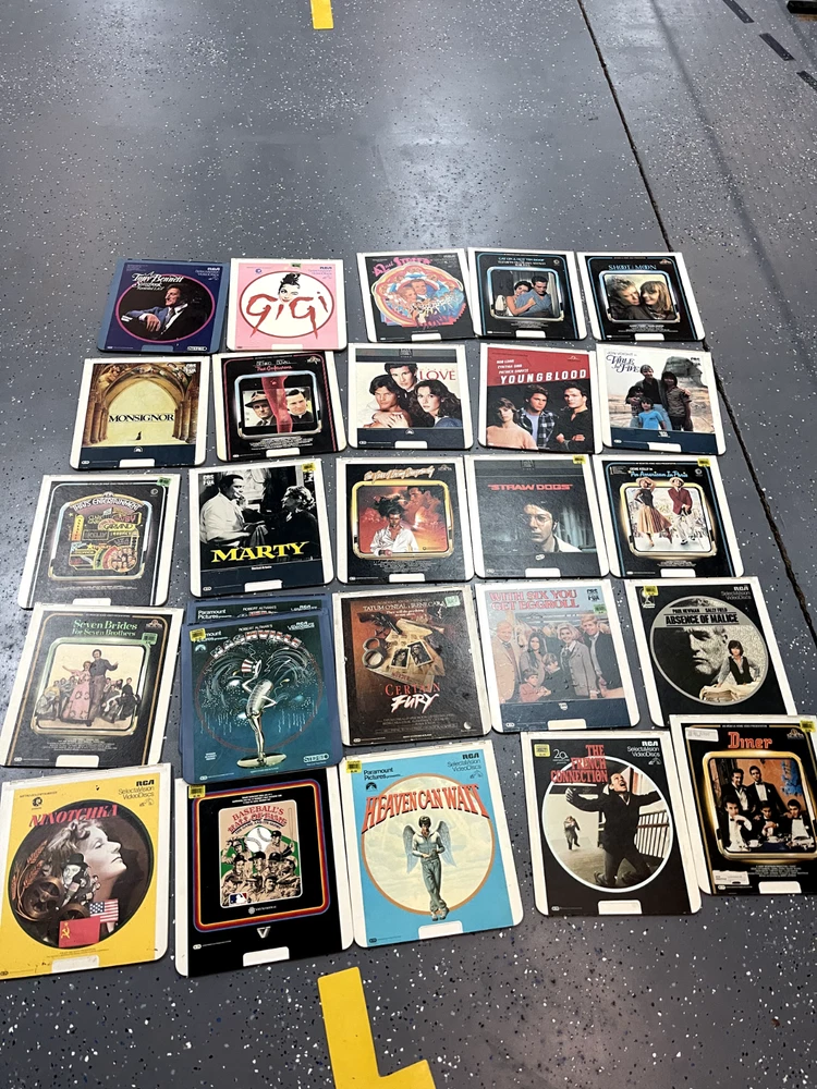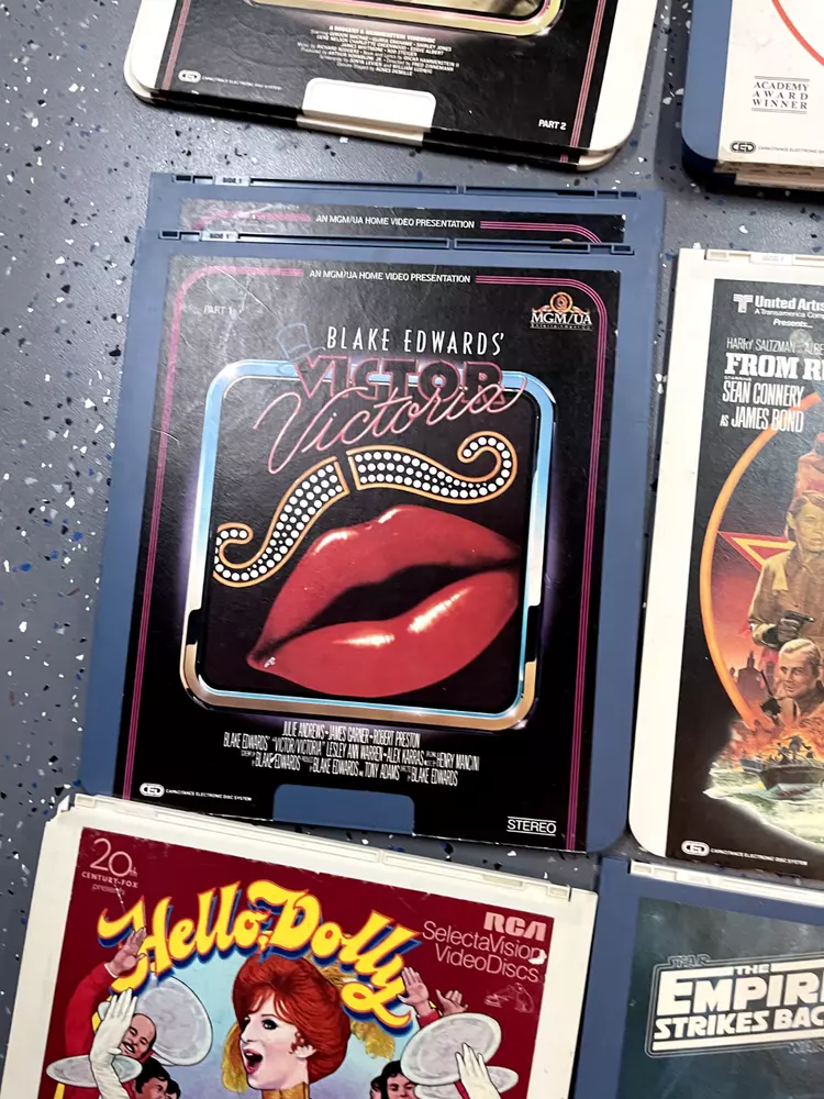 The product is a CED Selectavision Video Disc featuring a selection of SciFi, Action, and Drama movies such as Star Trek Empire strikes back, Rocky and Rambo. It allows you to choose your own movie from a variety of genres including Western, Musical, and Comedy, produced by Walt Disney Studios.