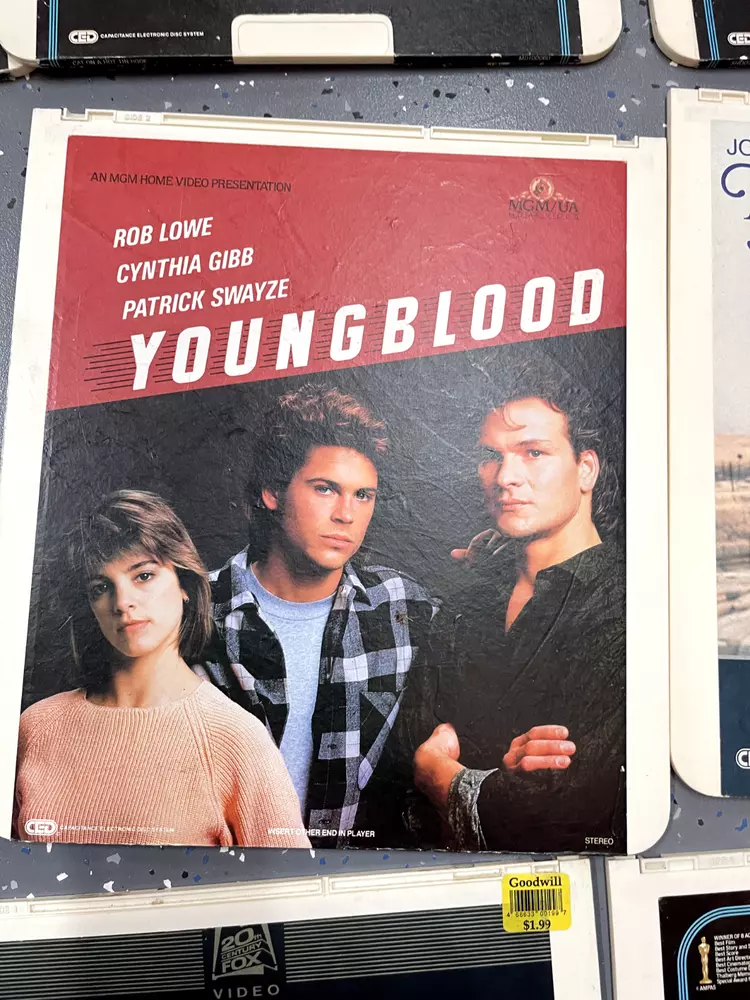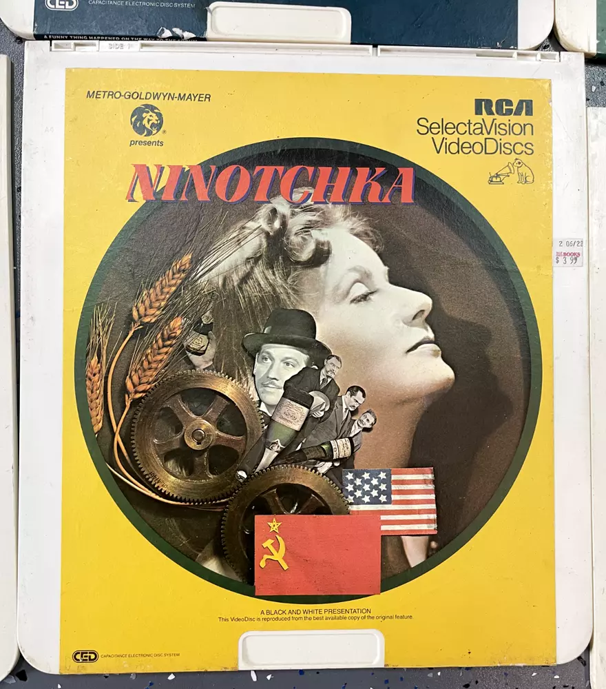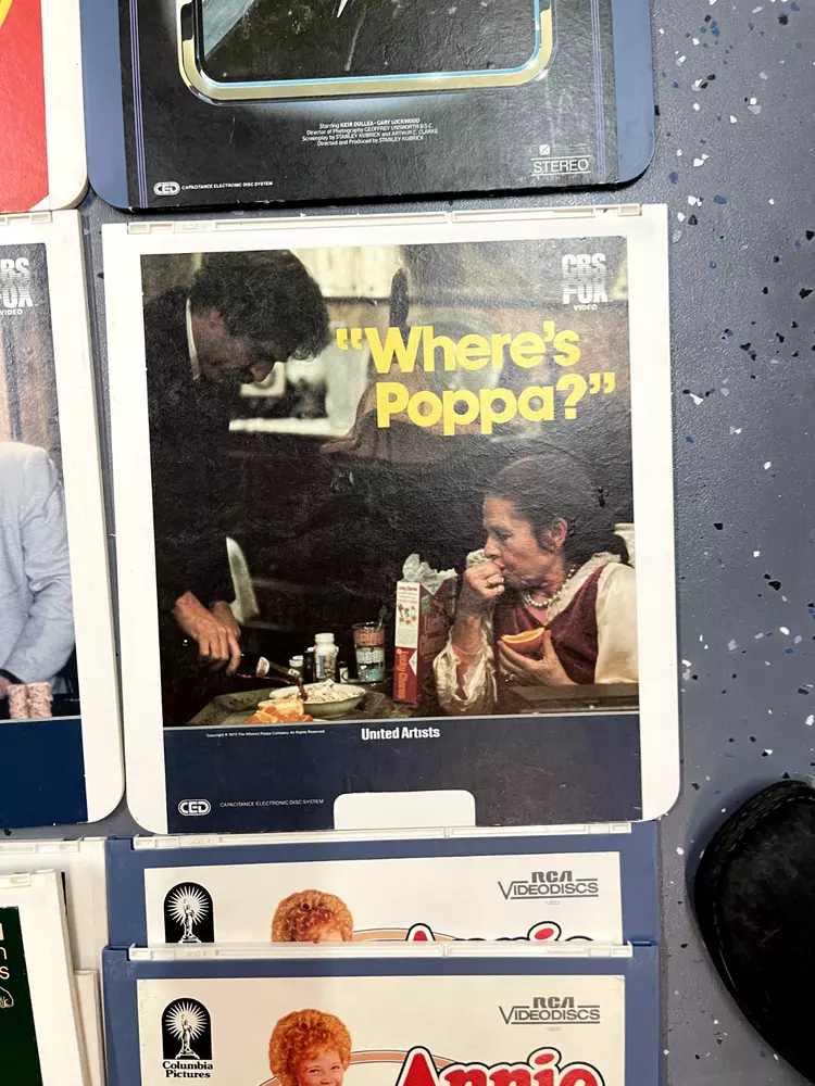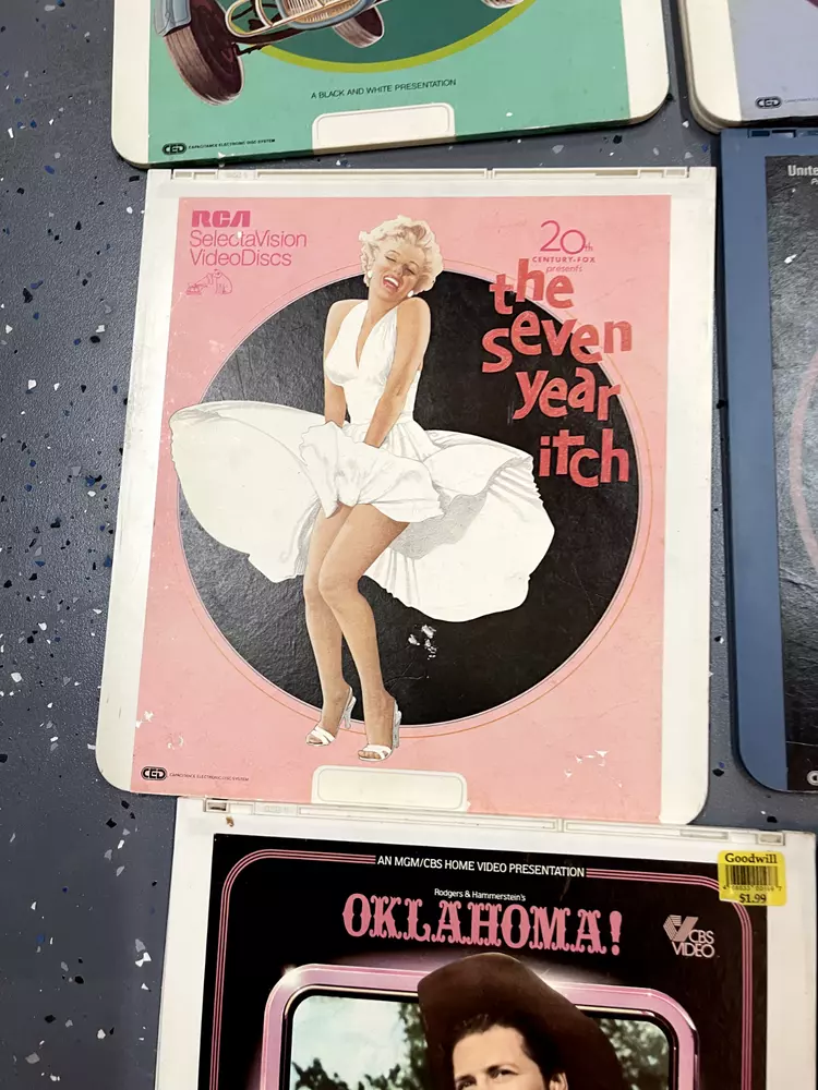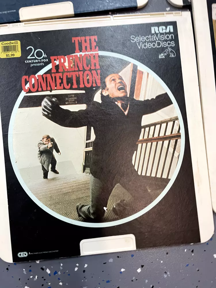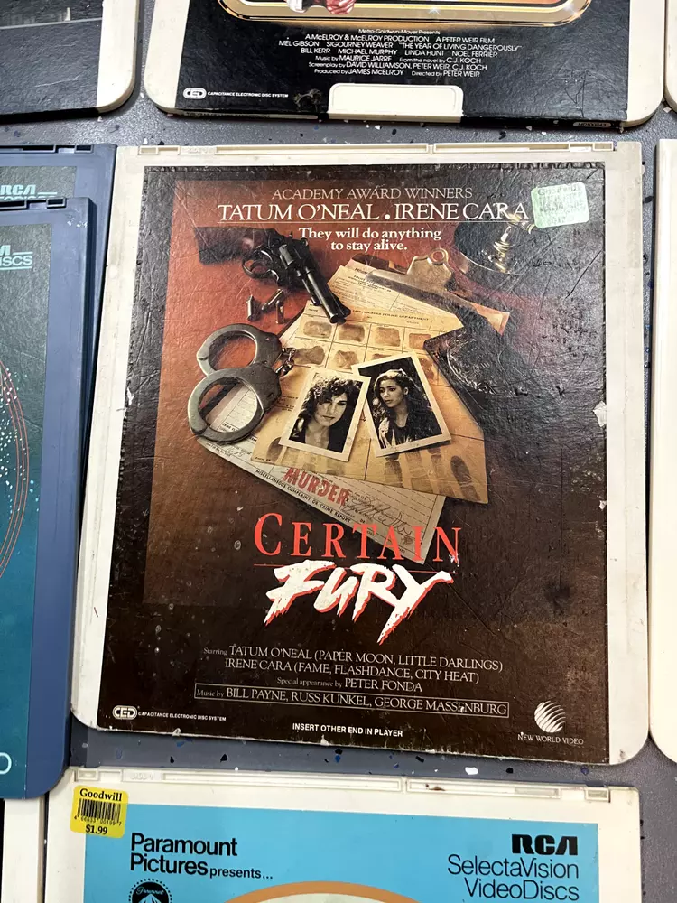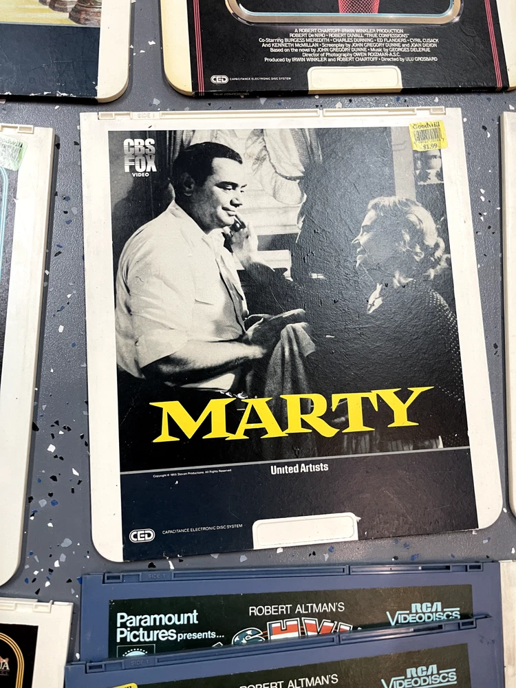 The product is a CED Selectavision Video Disc featuring a selection of SciFi, Action, and Drama movies such as Star Trek Empire strikes back, Rocky and Rambo. It allows you to choose your own movie from a variety of genres including Western, Musical, and Comedy, produced by Walt Disney Studios.
