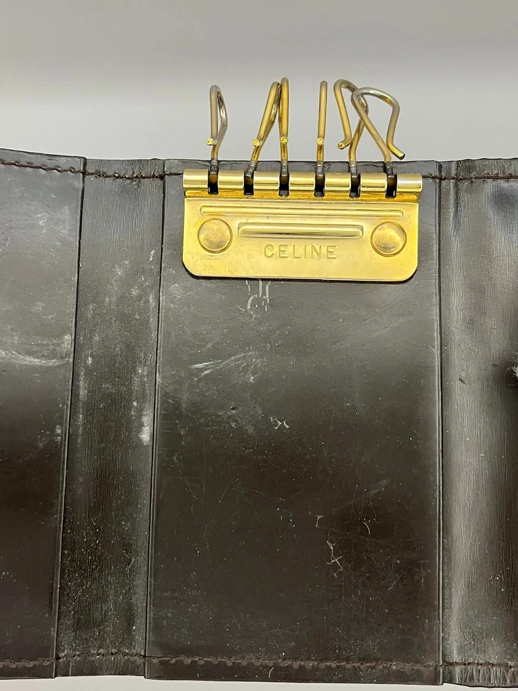 This key wallet is fantastic—compact yet holds six keys securely. The brown leather has a lovely worn-in look, giving it character. Despite minor signs of use, it's still in great shape. Shipping was fast with FedEx tracking, making the whole experience smooth. Perfect for keeping keys organized while adding a touch of Celine luxury!