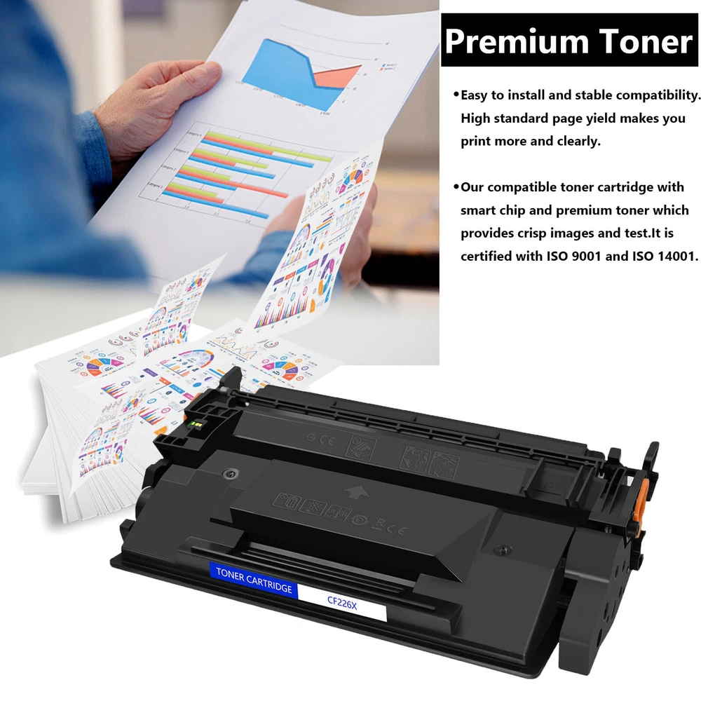 Condition: new It is certified with ISO 9001 and ISO 14001 Item:Brand New Premium Compatible For Brother CF226X High Yield Toner Cartridge Model:CF226X Color:Black Shelf Life:2 Years Printed Pages:9,000 pages at 5% coverage (Letter size Paper) Actual toner yield varies with usage, graphics printed and environmental conditions (Actual toner yield varies with usage, graphics printed and environmental conditions.) Compatible printer list: HP LaserJet Pro M402 Printer, HP LaserJet Pro M402n Printer, HP LaserJet Pro M402dn Printer, HP LaserJet Pro M402dw, LaserJet Pro M402d Printer, LaserJet Pro MFP M426 Printer, LaserJet Pro MFP M426dw Printer, LaserJet Pro MFP M426fdw Printer, LaserJet Pro M426fdn Printer. CF226X 26X Toner Cartridge for HP LaserJet Pro MFP M426 MFP M426dw M402 Printer Model CF226X Color Black Page Yield 9,000 pages at 5% Coverage (4A Paper) Warranty 1 Year Condition Brand New ( It is certified with ISO 9001 and ISO 14001 ) Compatible for Printers Listed Below: HP LaserJet Pro M402 HP LaserJet Pro M402n HP LaserJet Pro M402dn HP LaserJet Pro M402dw HP LaserJet Pro M402d HP LaserJet Pro MFP M426 HP LaserJet Pro MFP M426dw HP LaserJet Pro MFP M426fdw HP LaserJet Pro M426fdn Fast and Safe Shipping Reliability on the Move, Safety in Transportation. Print Effects Clear / Sharp / Vivid At Your Service Anytime Available to help you anytime. Please contact us through eBay messages.