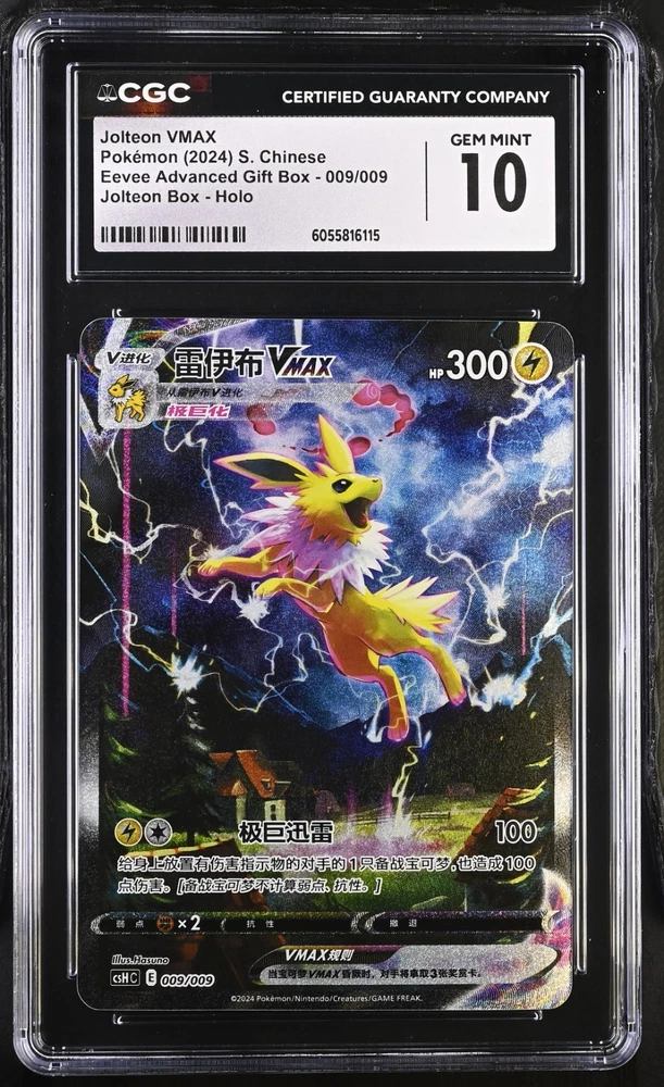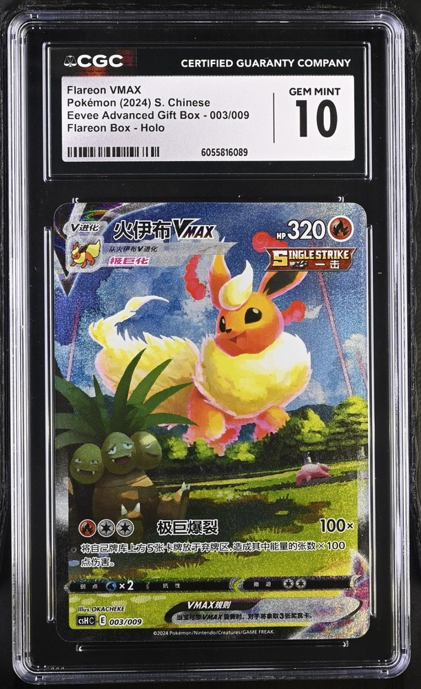CGC 10 GEM MINT Chinese Flareon Vaporeon Jolteon VMAX Alternate Art Holo Pokémon. The pictures for this listing are stock images. You will receive cards very similar to the ones pictured but certification numbers will be different. Grades will be identical. Please reach out with any questions and we would be happy to assist you. Returns are not accepted. Purchase of this item signifies agreement that Grade, Actual Condition and expected standards all match. Please see CGC website for more info. Shipping info: All graded cards are shipped securely in bubble mailer and cardboard box; regardless of price. Please reach out with any concerns before contacting ebay and we'd be happy to assist you. Please note that due to inventory accuracy, purchases will not be cancelled before or after shipping. Please reach out with any questions before purchase and we would be happy to assist you.