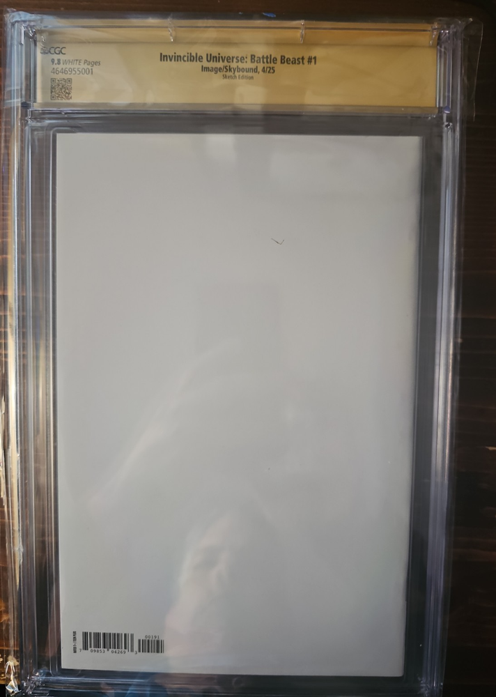 This is a true one-of-a-kind CGC Signature Series sketch cover of one of the most popular characters in the Invincible universe. Invincible Universe: Battle Beast #1 CGC 9.8 White Pages Signature Series Signed and fully sketched by Josh C. Lyman on 8/20/25 Partial blank cover with original Battle Beast artwork This is not a quick head doodle. This is a full, hand-drawn original cover sketch , witnessed and authenticated by CGC. These types of Invincible sketch covers are extremely rare, especially in 9.8 grade and with yellow label . Battle Beast has become one of the breakout characters from Invincible, and high-grade sketch covers of him are already being locked away by serious collectors. The book you see is the exact book you will receive.