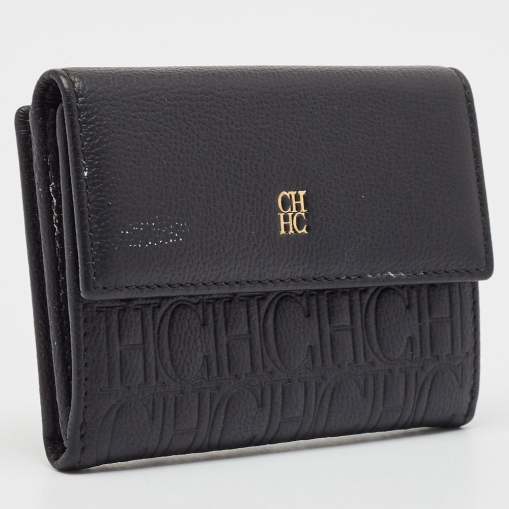 This CH Carolina Herrera piece is carefully crafted to offer you a luxurious accessory you will cherish. It is marked by high quality and enduring appeal. Invest in it todayCertified by The Luxury Closet - This item has gone through a detailed authentication process overseen by our experts. We offer a lifetime guarantee of authenticity on all our items. Import duties, taxes and charges are not included in the item price. These charges are the buyers responsibility. Please check with your country’s customs office to determine what these additional cost will be prior to buying. Our eBay Store About Us Contact Us Add to Favorite Sellers CH Carolina Herrera Black Monogram Leather Compact Wallet $199.1 This CH Carolina Herrera piece is carefully crafted to offer you a luxurious accessory you will cherish. It is marked by high quality and enduring appeal. Invest in it today Product Details Brand Color Black Dimensions Height: 8 cm, Width: 2 cm, Length: 10.5 cm Material Leather Size Outsole Width Outsole Length Heel Height Includes The Luxury Closet Packaging Certified by The Luxury Closet This item has gone through a detailed authentication process overseen by our experts. We offer a lifetime guarantee of authenticity on all our items. How We Check The in-house team of experts at The Luxury Closet is highly trained to verify the authenticity and the condition of the luxury products. They ensure that only 100% authentic items are put on sale.The evaluation process is unique with its own mix of assessment criteria and differs according to the category. Each item is evaluated based on the following combination of hallmarks, hardware, stitching, symmetry, material, craftsmanship, stamping, codes, hologram stickers, and packaging. Our authenticators also check if the items have been modified or amended (e.g., aftermarket diamonds, replaced batteries, repaired bags, etc.) International Buyers Import duties, taxes and charges are not included in the item price. These charges are the buyers responsibility. Please check with your country’s customs office to determine what these additional cost will be prior to buying.