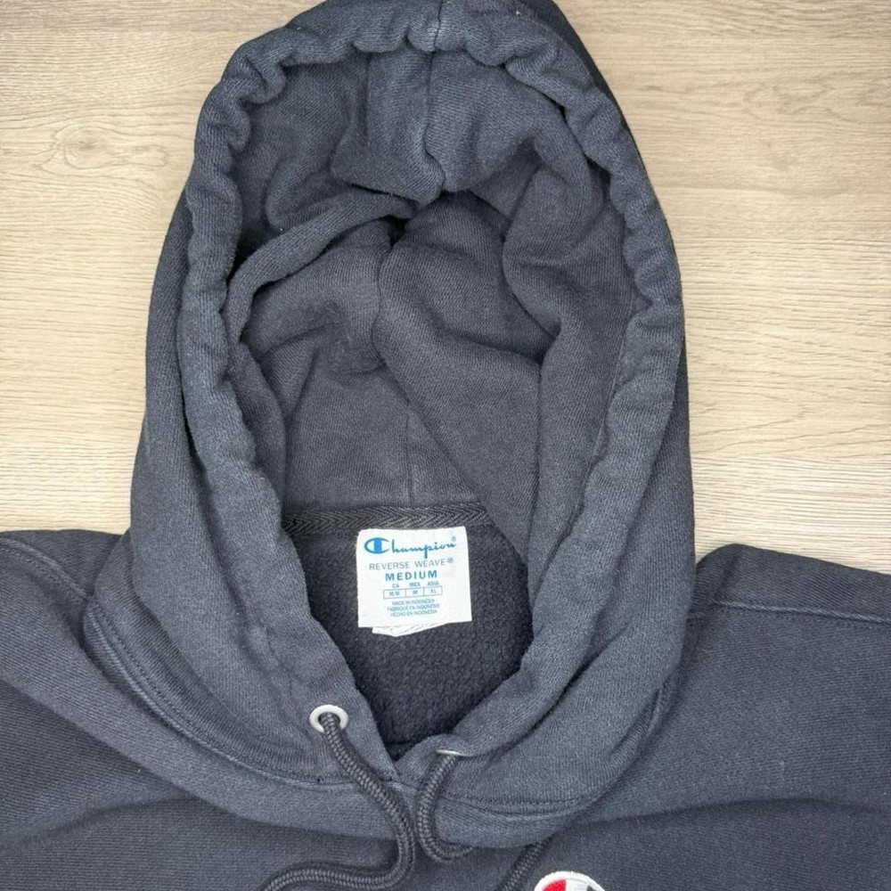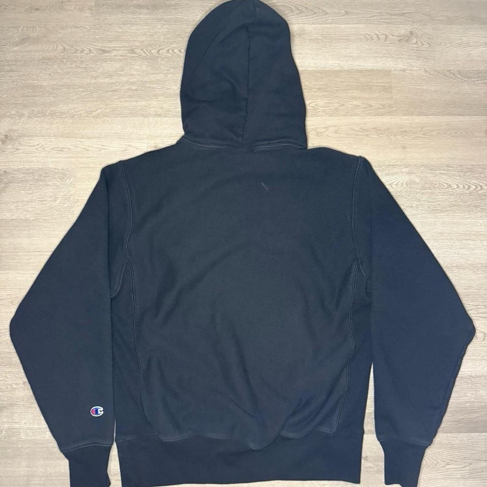 Champion Reverse Weave hoodie Color: Navy, Black Size: M Brand: Champion A very tiny stain located on the back of the hoodie can be seen in picture!