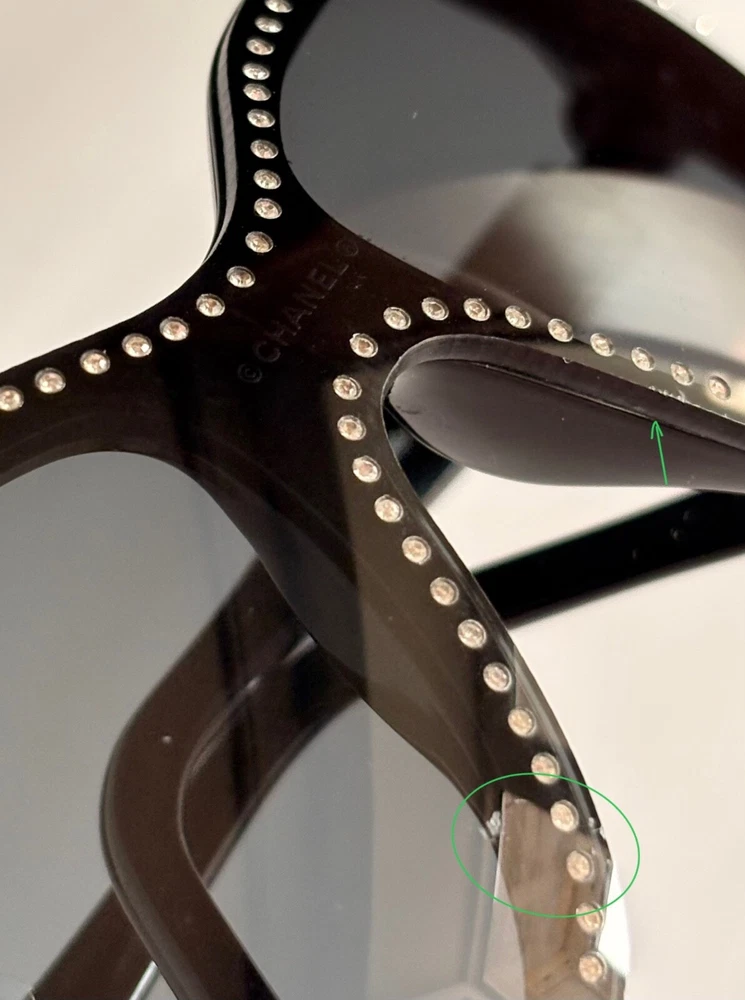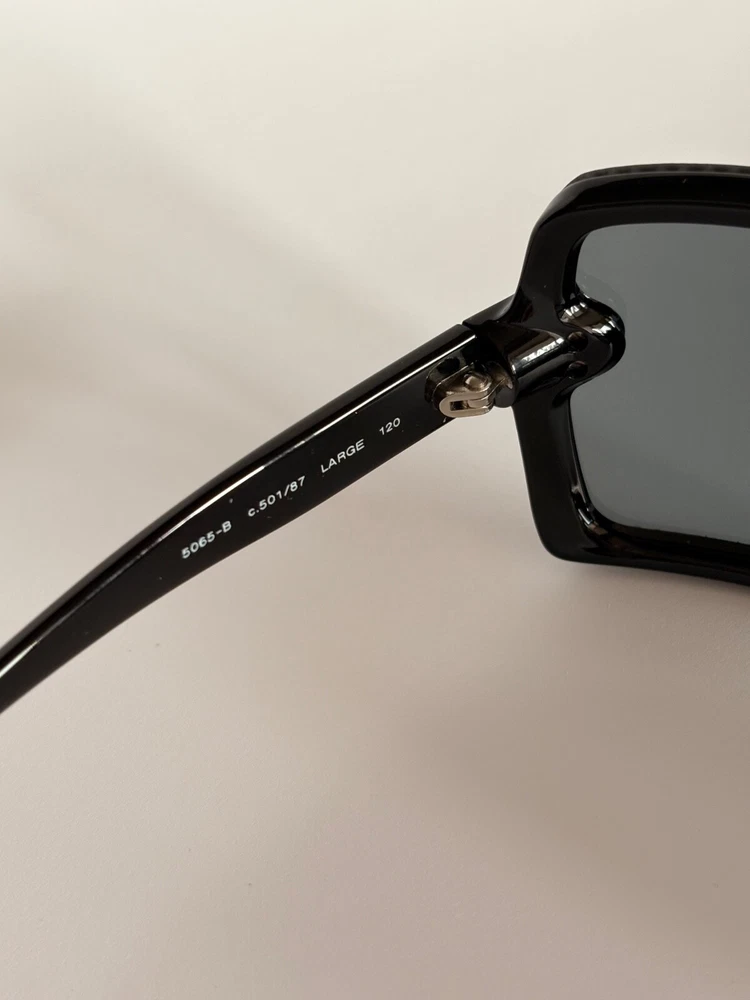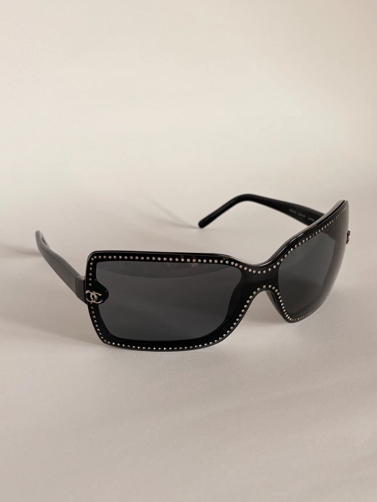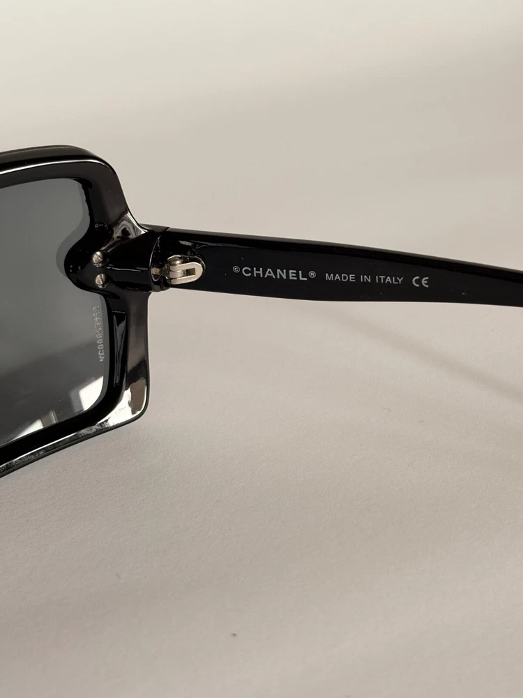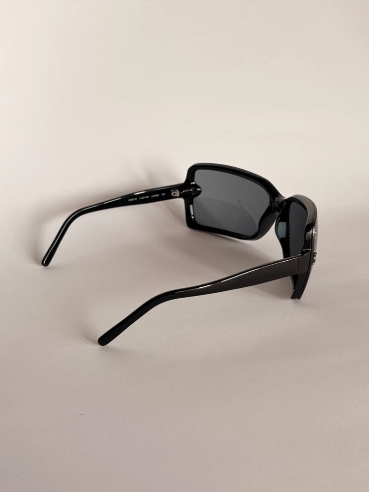 Chanel black sunglasses 5065-B c.501/87 LARGE 120 Swarovski crystals frame with small CC logos. Include case and dust bag. Condition: good, has scratches ( see photos) Open to your offers Check description and photos very attentively Add your phone number to the shipping info Worldwide delivery 7-25 days. No retuns. If your need any other information about postcage, measurements, photos etc. please contact me. I will be glad to help You!