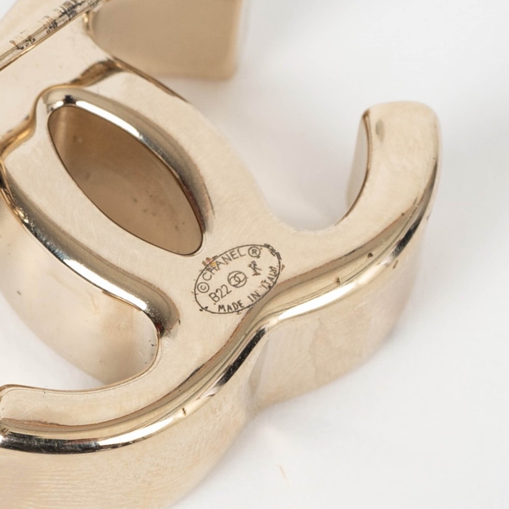 Welcome to LUX l Authentic Designer Consignment Rämistrasse 25, 8001 Zürich, Switzerland I Tue-Fri 11-18:30 & Sat 11-16:00 By bidding on our auctions you are agreeing to our Terms and Conditions below. All items come with authenticity guarantee! ------------------------------------------------------------------------------------------------------------------------------------------ Product Description: This 100% authentic Chanel brooch in beige gold-tone metal is a bold interpretation of the iconic interlocking CC logo. Designed with a thick, sculptural depth, it exudes modern elegance while maintaining the house’s timeless allure. A statement accessory that effortlessly enhances any ensemble with signature Chanel sophistication. Has been worn and is in excellent condition. 2022 Fall/Winter Measurements Model 22K Tag Size One Size Width 4cm (1.6in) Length 4cm (1.6in) Hardware Beige Gold-Tone All our listings include only the listed item unless otherwise specified in the description above - Price does not include import duties & taxes - check your countries import laws prior purchase ------------------------------------------------------------------------------------------------------------------------------------------ Terms & Conditions Luxury-Shops is not affiliated with any of the name-brand items we offer for sale. Warranties and Liabilites: Luxury-Shops declines all responsibility and cannot be held liable for any damages caused by the use of a specific garment. We also cannot be held responsible for the quality of an item (we are not the manufacturer) or any damages resulting from a manufacturing defect. No warranties of any kind are given or implied. Condition of Merchandise: Luxury-Shops offers for sale luxury top-quality products. We fully disclose the condition of each item. In the description of each product, Luxury-Shops will specify the conditions if different from the standards set by the market (Required disclosure of prior use) The main characteristics of products are shown in great detail (through numerous photographs and in-depth descriptions). The products offered for sale MAY NOT correspond to the real garments in terms of image and color because of the Internet Browser or Monitor used (color calibration). Luxury-Shops disclaims all responsibility. Every used item offered by Luxury-Shops has been cleaned and restored to the best possible condition unless noted otherwise. Every used or vintage handbag has been polished and refinished. Your purchases will be sent to you ready to be used or worn. Please be aware that vintage items may be delicate and may not be as resilient as a brand-new item. Please take appropriate care when using a vintage item. Damage to items after receipt or use by customers is not the responsibility of Luxury-Shops. Luxury-Shops is a reseller of authentic designer and vintage merchandise. We are not an authorised dealer and are not affiliated with the brands we sell on our site. Store-new designer items are only available from an authorised dealer or the actual store. Once the item leaves the authorised dealer with a customer, the item is considered pre-owned. However, items can be pre-owned and in new condition - that is, never used by the owner. Below are the definitions of the descriptions we use. NEW : in new condition, that is, never used . This means the item may have been purchased by us from an authorized dealer or a store. New items may also be pre-owned, that is, purchased by one of our consignors and never used. These items may have minor signs of handling as would any item available at an authorized dealer or boutique given that customers would reasonably handle an item when trying it on or examining it for purchase. USED: the item has been carried or worn and may be in any of the conditions described below. PRISTINE/VIRTUALLY NEW : Appears to have been used only a handful of time and is nearly new in condition. May have very slight signs of having been used upon close inspection. EXCELLENT : Used and in top condition. There may be faint signs of wear, slight scratches, marks or nicks which are not particularly noticeable and will not affect the use or wear of the item. Our descriptions and photographs will clearly indicate the condition of the item. GOOD : Used, may be an older or well-loved item. There may be slightly more noticeable signs of wear, scratches or marks. These will not affect the wear or use of the item. Our descriptions and photographs will clearly indicate the condition of the item. VINTAGE : Typically around 20 to just under 100 years old. Our vintage items are carefully examined and selected. Most are gently or rarely used, meticulously stored or cared for and will come to you in a perfectly usable condition. However, these are unique items which may be of a finer and more delicate nature than brand-new items so please be sensitive to this and have reasonable expectations of their resilience. We do not make allowances for unreasonable expectations in the condition of our items. Product Descriptions: We make every effort to display the products featured on our web site as accurately as possible, using a large array of unaltered digital photographs and detailed descriptions. Our examination and assessment of merchandise is meticulous and conducted with great attention to detail. Our expertise and product knowledge comes from many years of experience with authentic designer and vintage items. We make as much effort as is humanly possible to disclose all relevant information required for you to be completely confident about your purchase. However, the display and colour capabilities of your computer monitor could affect the colours you see on the screen and these may differ from the actual product. Luxury-Shops is not responsible for monitor limitations and cannot guarantee that a monitor's display of any colour, texture, or detail of merchandise will be accurate. Also, every designer has a different standard with 
