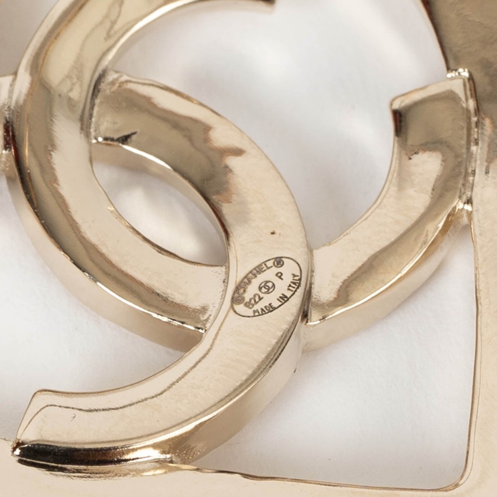 CHANEL 22P Gold CC Heart Brooch 71701 Authentic