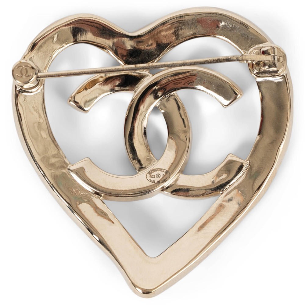 Welcome to LUX l Authentic Designer Consignment Rämistrasse 25, 8001 Zürich, Switzerland I Tue-Fri 11-18:30 & Sat 11-16:00 By bidding on our auctions you are agreeing to our Terms and Conditions below. All items come with authenticity guarantee! ------------------------------------------------------------------------------------------------------------------------------------------ Product Description: This 100% authentic Chanel heart brooch in gold-tone metal is a timeless expression of the house’s iconic elegance. Featuring intricate signature engravings throughout, it is accented with a classic CC at the center for a refined touch. A romantic and collectible piece that effortlessly enhances any look with Chanel’s unmistakable charm. Has been worn and is in excellent condition. 2022 Pre-Spring Measurements Model 22P AB7896 B07713 NG966 Tag Size One Size Width 4.4cm (1.7in) Length 4.5cm (1.8in) Hardware Beige Gold-Tone All our listings include only the listed item unless otherwise specified in the description above - Price does not include import duties & taxes - check your countries import laws prior purchase ------------------------------------------------------------------------------------------------------------------------------------------ Terms & Conditions Luxury-Shops is not affiliated with any of the name-brand items we offer for sale. Warranties and Liabilites: Luxury-Shops declines all responsibility and cannot be held liable for any damages caused by the use of a specific garment. We also cannot be held responsible for the quality of an item (we are not the manufacturer) or any damages resulting from a manufacturing defect. No warranties of any kind are given or implied. Condition of Merchandise: Luxury-Shops offers for sale luxury top-quality products. We fully disclose the condition of each item. In the description of each product, Luxury-Shops will specify the conditions if different from the standards set by the market (Required disclosure of prior use) The main characteristics of products are shown in great detail (through numerous photographs and in-depth descriptions). The products offered for sale MAY NOT correspond to the real garments in terms of image and color because of the Internet Browser or Monitor used (color calibration). Luxury-Shops disclaims all responsibility. Every used item offered by Luxury-Shops has been cleaned and restored to the best possible condition unless noted otherwise. Every used or vintage handbag has been polished and refinished. Your purchases will be sent to you ready to be used or worn. Please be aware that vintage items may be delicate and may not be as resilient as a brand-new item. Please take appropriate care when using a vintage item. Damage to items after receipt or use by customers is not the responsibility of Luxury-Shops. Luxury-Shops is a reseller of authentic designer and vintage merchandise. We are not an authorised dealer and are not affiliated with the brands we sell on our site. Store-new designer items are only available from an authorised dealer or the actual store. Once the item leaves the authorised dealer with a customer, the item is considered pre-owned. However, items can be pre-owned and in new condition - that is, never used by the owner. Below are the definitions of the descriptions we use. NEW : in new condition, that is, never used . This means the item may have been purchased by us from an authorized dealer or a store. New items may also be pre-owned, that is, purchased by one of our consignors and never used. These items may have minor signs of handling as would any item available at an authorized dealer or boutique given that customers would reasonably handle an item when trying it on or examining it for purchase. USED: the item has been carried or worn and may be in any of the conditions described below. PRISTINE/VIRTUALLY NEW : Appears to have been used only a handful of time and is nearly new in condition. May have very slight signs of having been used upon close inspection. EXCELLENT : Used and in top condition. There may be faint signs of wear, slight scratches, marks or nicks which are not particularly noticeable and will not affect the use or wear of the item. Our descriptions and photographs will clearly indicate the condition of the item. GOOD : Used, may be an older or well-loved item. There may be slightly more noticeable signs of wear, scratches or marks. These will not affect the wear or use of the item. Our descriptions and photographs will clearly indicate the condition of the item. VINTAGE : Typically around 20 to just under 100 years old. Our vintage items are carefully examined and selected. Most are gently or rarely used, meticulously stored or cared for and will come to you in a perfectly usable condition. However, these are unique items which may be of a finer and more delicate nature than brand-new items so please be sensitive to this and have reasonable expectations of their resilience. We do not make allowances for unreasonable expectations in the condition of our items. Product Descriptions: We make every effort to display the products featured on our web site as accurately as possible, using a large array of unaltered digital photographs and detailed descriptions. Our examination and assessment of merchandise is meticulous and conducted with great attention to detail. Our expertise and product knowledge comes from many years of experience with authentic designer and vintage items. We make as much effort as is humanly possible to disclose all relevant information required for you to be completely confident about your purchase. However, the display and colour capabilities of your computer monitor could affect the colours you see on the screen and these may differ from the actual product. Luxury-Shops is not responsible for monitor limitations and cannot guarantee that a monitor's display of any colour, texture, or detail of merchandise will be accurate. Also, every designer