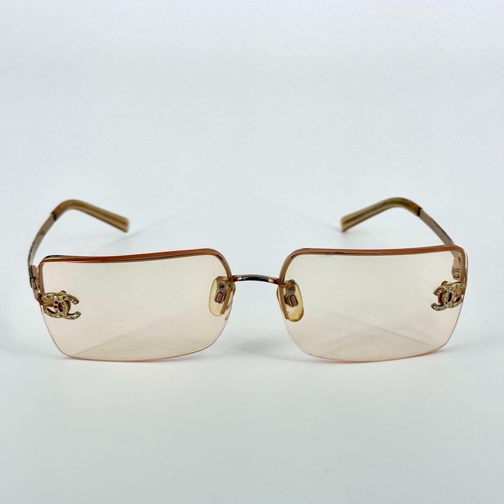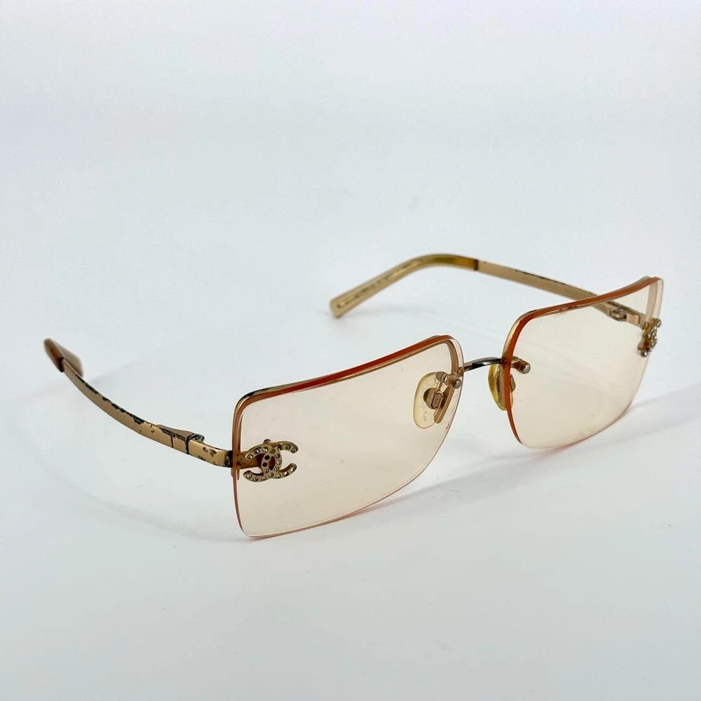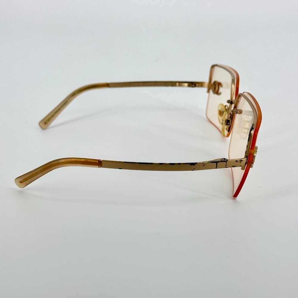 $ 122.5CHANEL 4017-D Rimless Sunglasses Orange Gradient Lens with Rhinestone Coco Logo