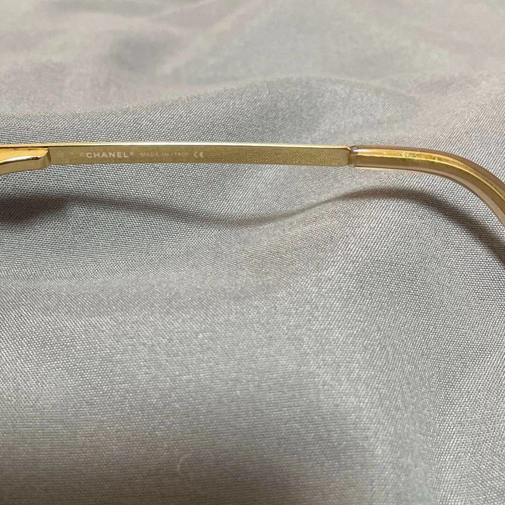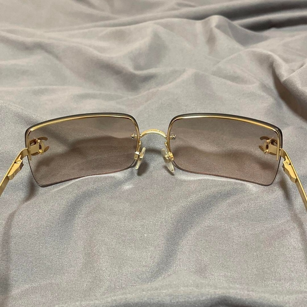 Vintage: No Brand: CHANEL Department: Women Country/Region of Manufacture: Italy Frame Color: Gold Style: Square Frame Material: Metal Model: CHANEL 4104 Rimless Theme: Designer Personalized: No Type: Sunglasses Features: Rimless