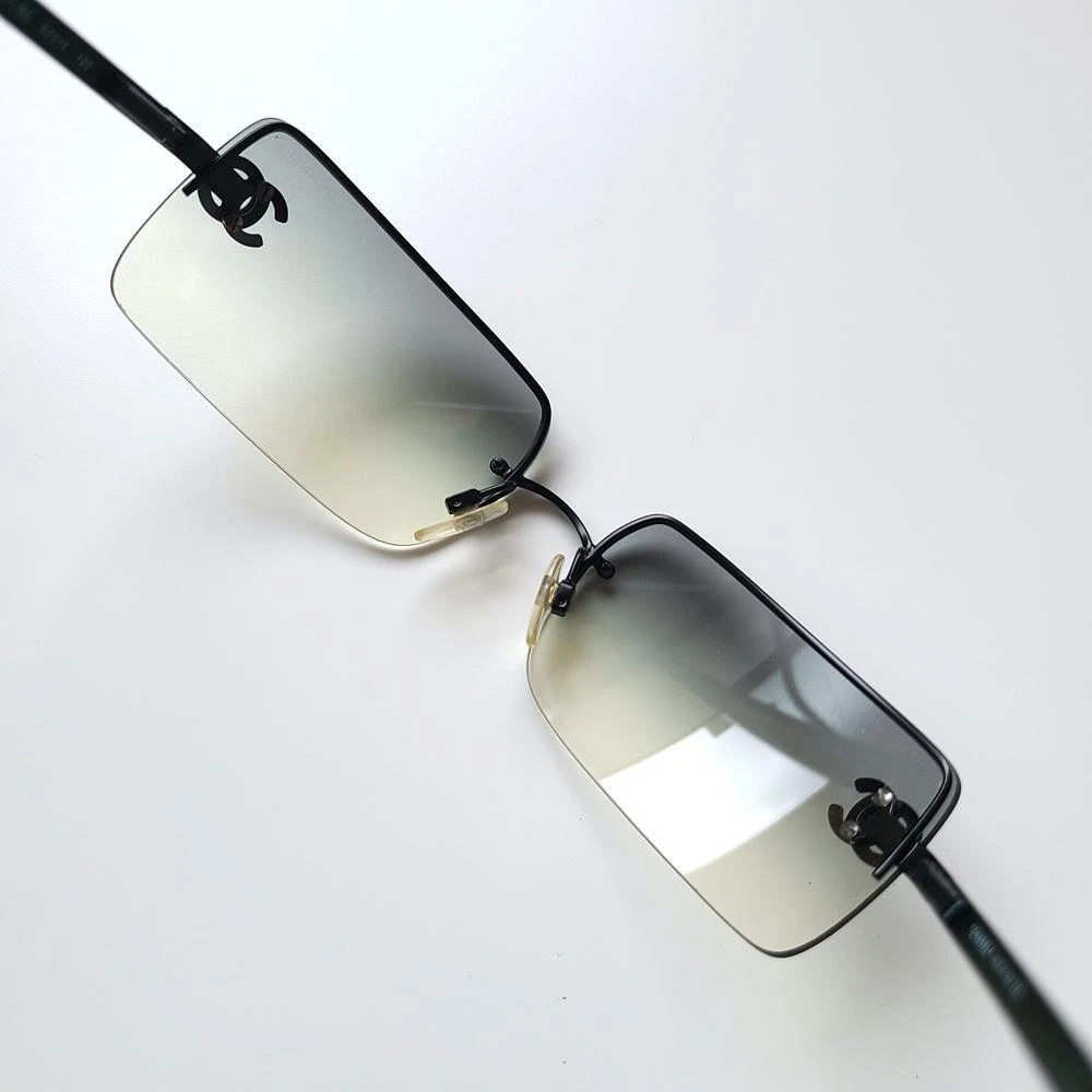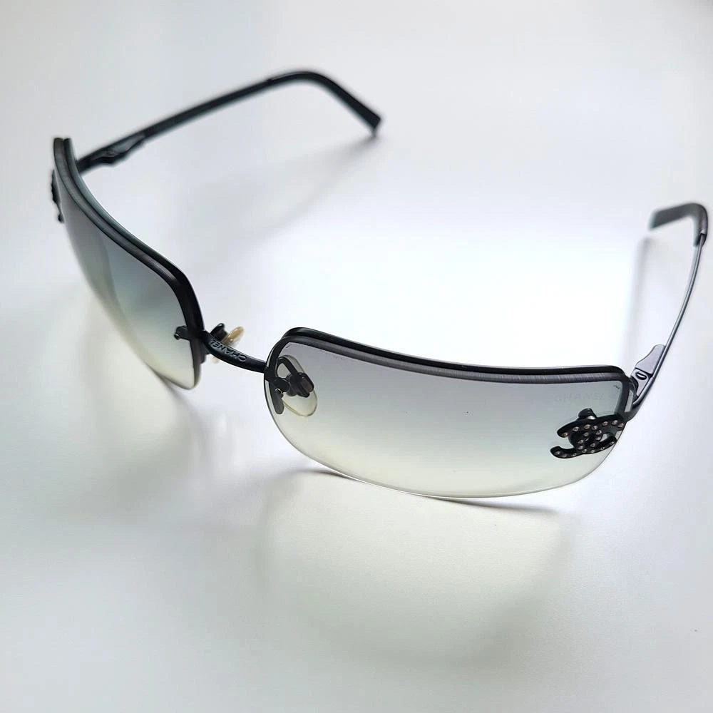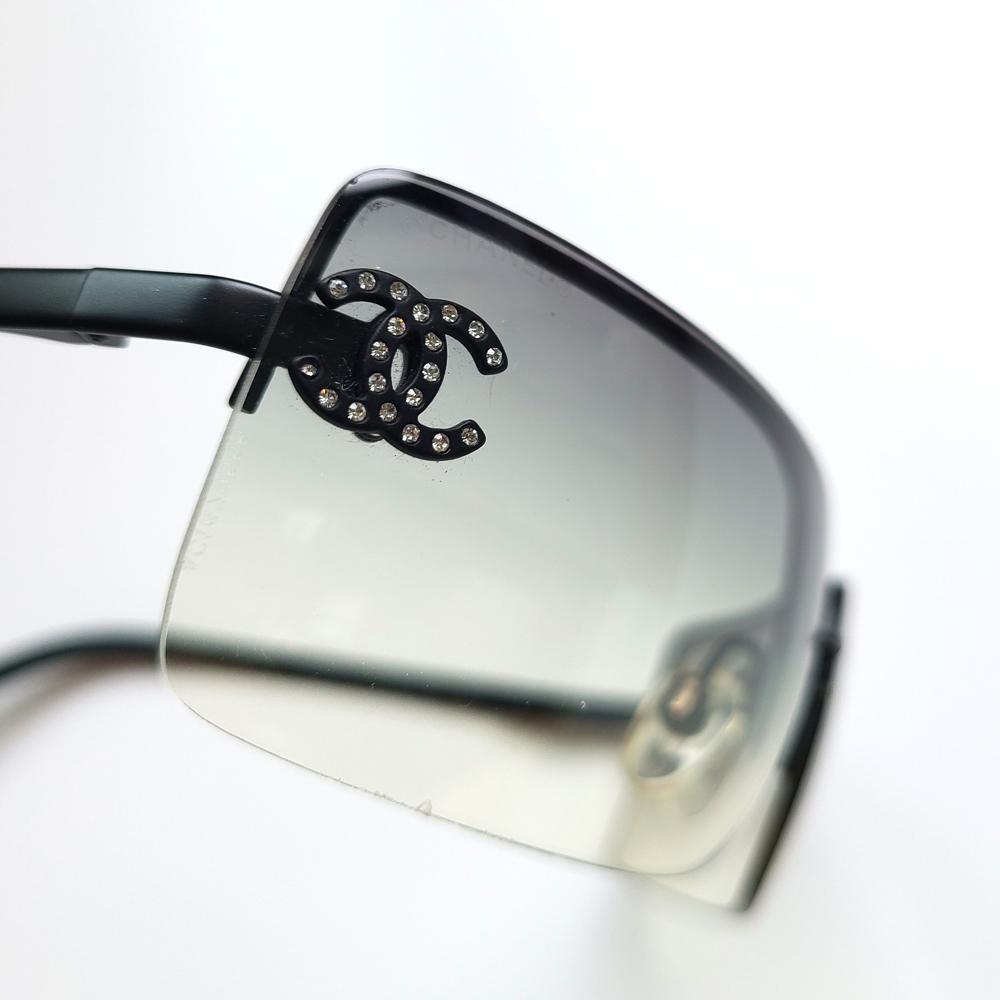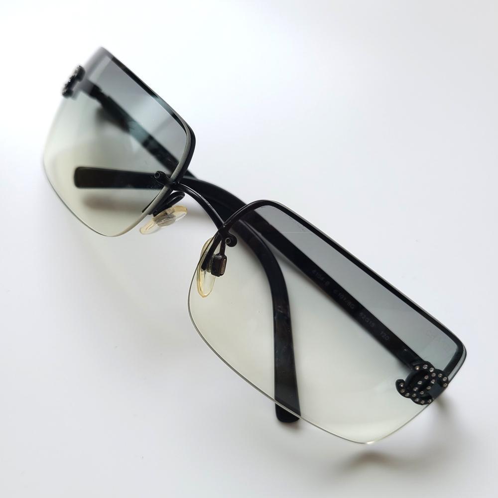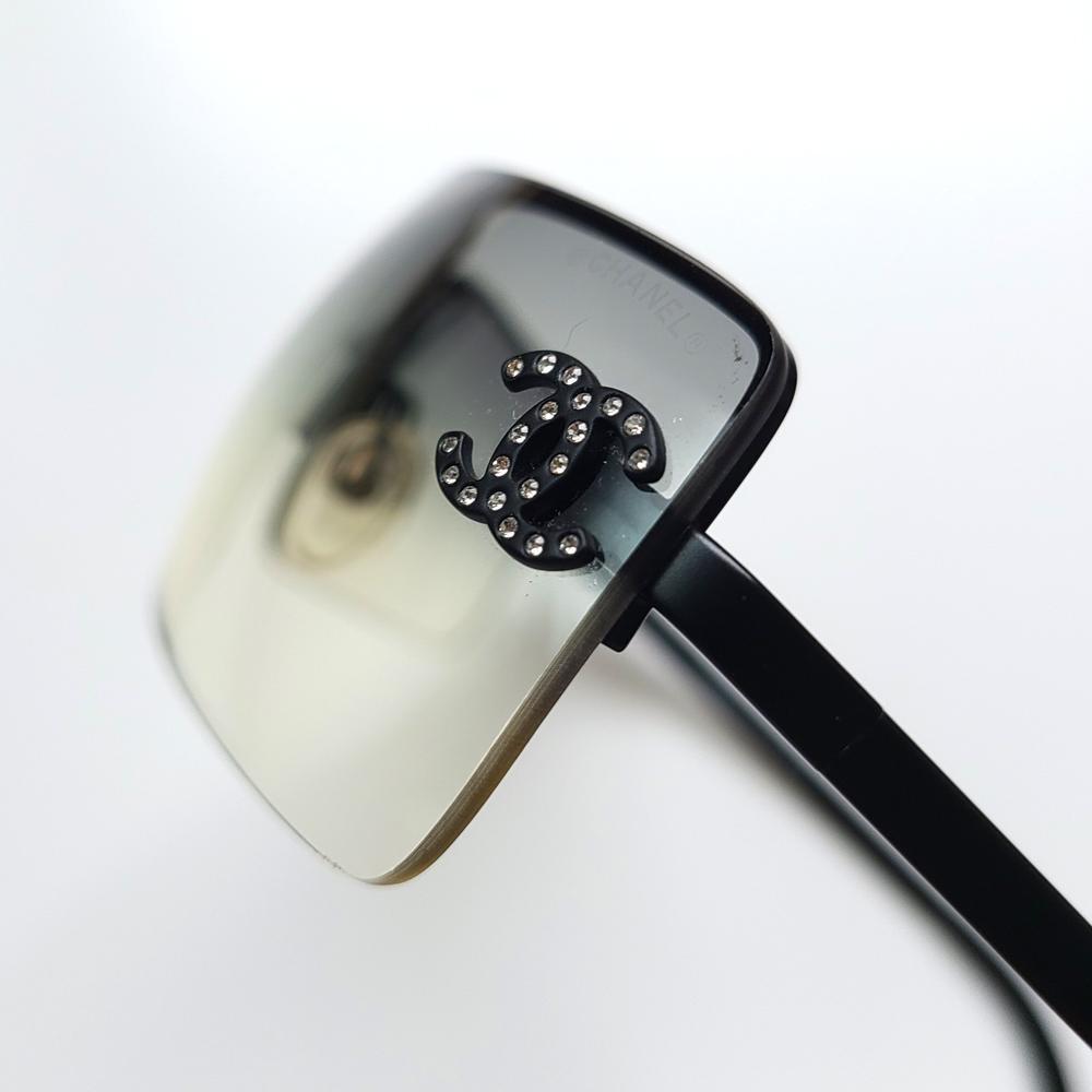 CHANEL 4104-B CC Logo Black Rhinestone Rimless Sunglasses PO1017556