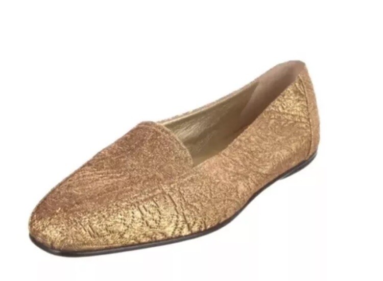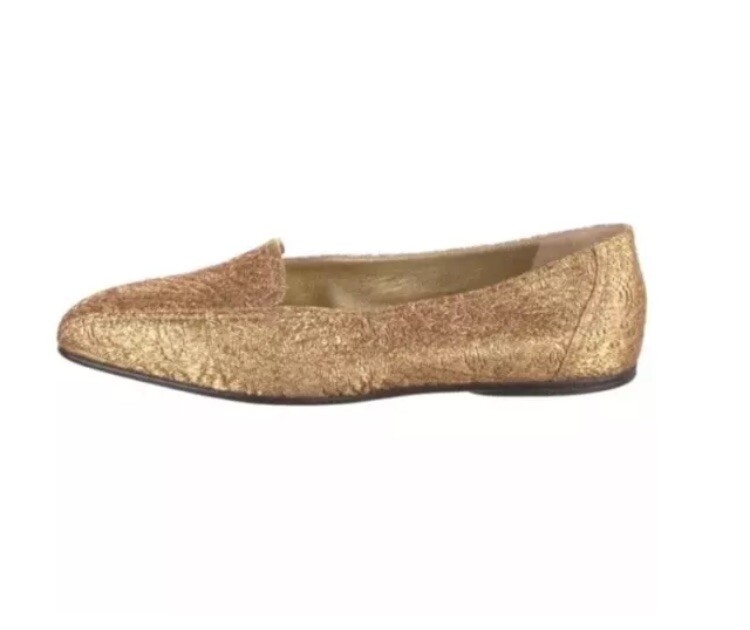 Elevate your footwear collection with these CHANEL Nylon Gold Loafers, a blend of luxury and comfort crafted in Italy. The metallic gold hue adds a touch of sophistication to any ensemble, making these flats a versatile choice for both casual and formal occasions. Designed with the modern woman in mind, the loafers feature a durable nylon upper and a comfortable flat sole, perfect for those who value both style and comfort. The size 6.5 US (36.5 EU, 6.5 UK) ensures a fit that's just right for a variety of foot shapes. Authentic Pre owned, on very good condition