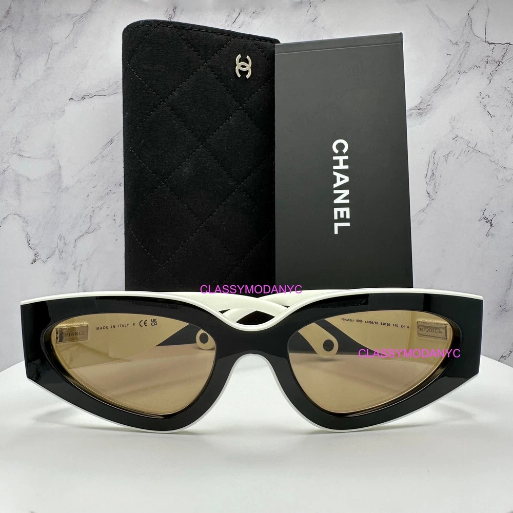 Chanel 6056 c.1656/54 Black/White Sunglasses w/ Brown Lens These Chanel Glasses are always on the cutting edge of fashion and style. Known for their distinctive and innovative designs, These Sunglasses are the ultimate in luxury fashion. All frames are made exclusively in Italy. Brand New & 100% Authentic Guaranteed Made in Italy Size 54-20-140mm Retail price is $699.00 Free Shipping in the USA Chanel Case Soft Pouch Cloth Included Your Feedback is Important to Us Customer Satisfaction is our # 1 priority. Please do not leave a negative or neutral feedback if you are not satisfied with the item you purchased. We will work with you in every way possible. Mistakes can happen on both sides. Lets make an effort to correct the problem before leaving feedback. We work extremely hard to maintain a high DSR rating & we will do everything in our power to receive positive feedback. We need your positive feedback and five stars on eBay!