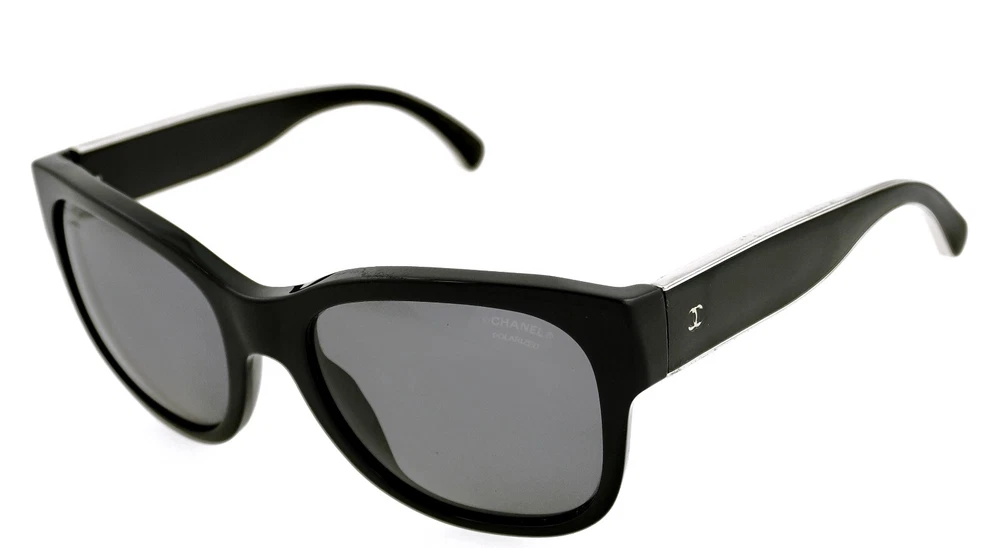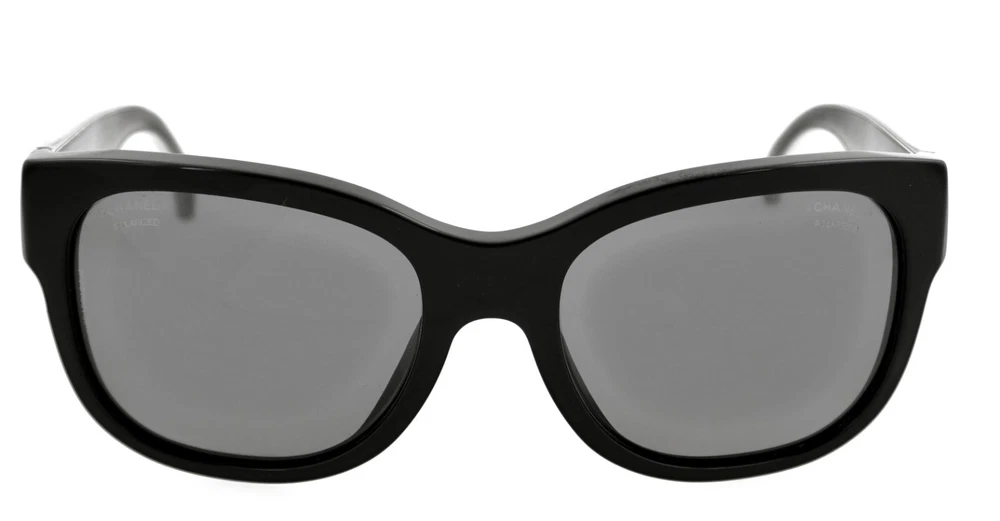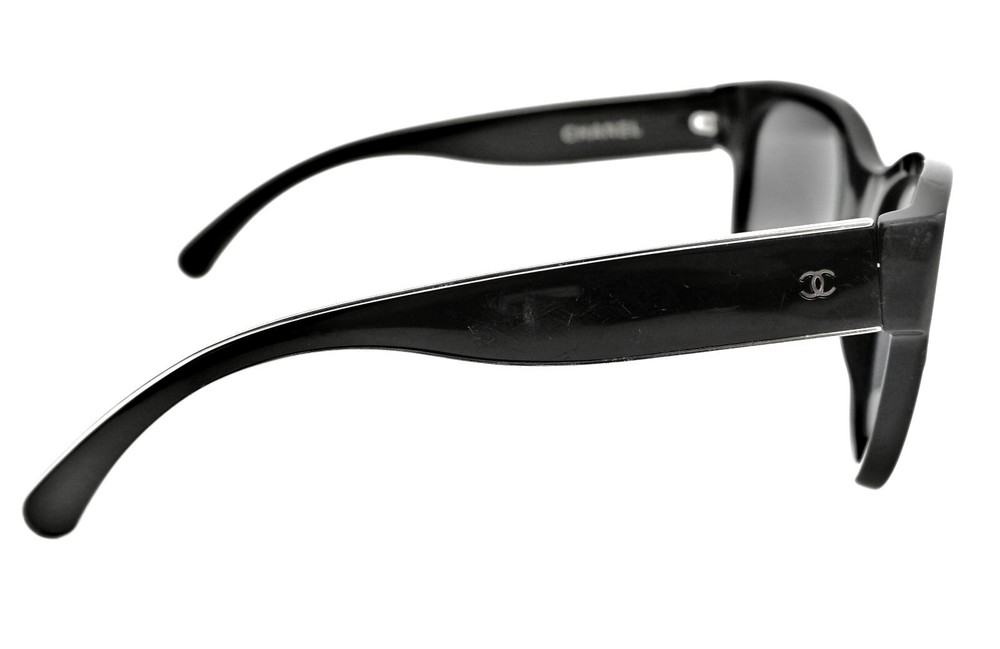 CHANEL model: CH 5270 501/T8 material: acetate, enamel size: 57mm 57-19-135 frame color: black lens color: gray polarized made in: Italy overall very good condition. right arm has some scratches. please see all photos, photos are actual pair