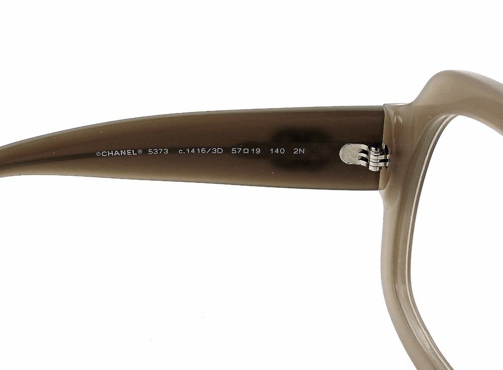 CHANEL model: CH 5373 1416 size: 57mm 57-19-140 frame color: Taupe Gray material: acetate made in: Italy excellent condition no issues