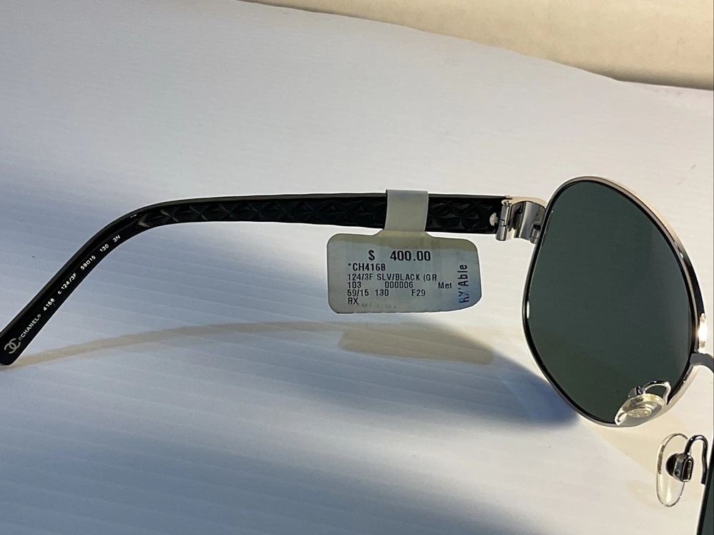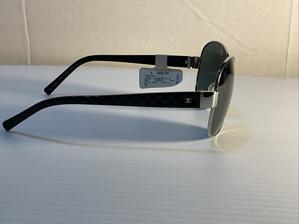 The CHANEL CH4168 Sunglasses are a stylish and high-quality accessory designed for women. The silver and black frame adds a touch of sophistication, while the black lenses provide UV protection and add a sleek contrast to the overall design. Made in Italy, these designer sunglasses boast a temple length of 130mm, ensuring both style and functionality in one fashionable package. Ideal for those looking for a chic and timeless eyewear option from a reputable brand like CHANEL. Condition: Brand New (Unused, Tags Attached) Packaging: No retail packaging included Includes: Sunglasses only – does not include original box, booklet, or cleaning cloth Description: This item is brand new. Tags are still intact, but it does not come with the original retail packaging or accessories. Because of this, it’s offered at a steep discount from the original price.