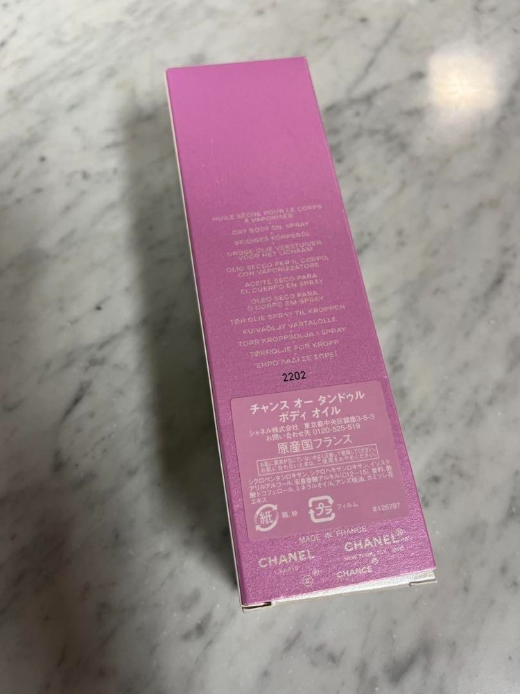 This body oil is an absolute dream—lightweight yet deeply hydrating with the fresh, elegant scent of CHANEL Chance Eau Fraiche. Perfect for a subtle glow and lasting fragrance. The seller provided clear photos and honest details about the condition, making the purchase worry-free. A luxurious treat for the skin!