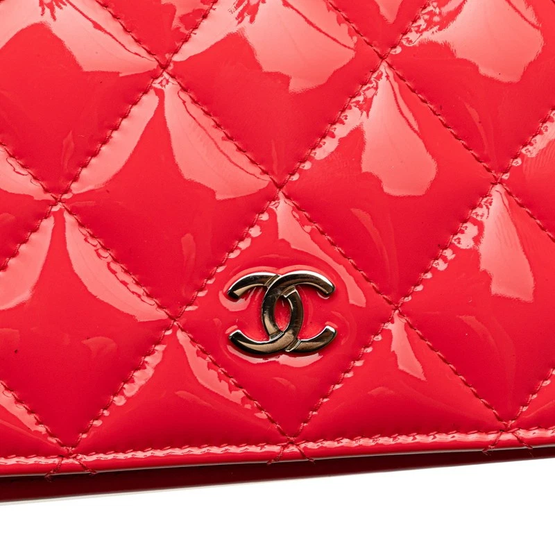This CHANEL bag is absolutely stunning! The red-pink patent leather is vibrant and eye-catching, while the matelassé stitching adds a luxurious touch. The chain strap makes it perfect for both shoulder and crossbody wear. The size is practical yet stylish, fitting essentials without being bulky. The craftsmanship is impeccable, as expected from CHANEL. The color is even more beautiful in person—perfect for adding a pop to any outfit. Highly recommend for anyone looking for a chic, statement piece!