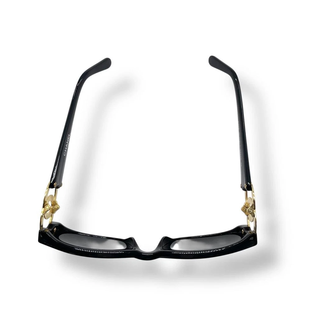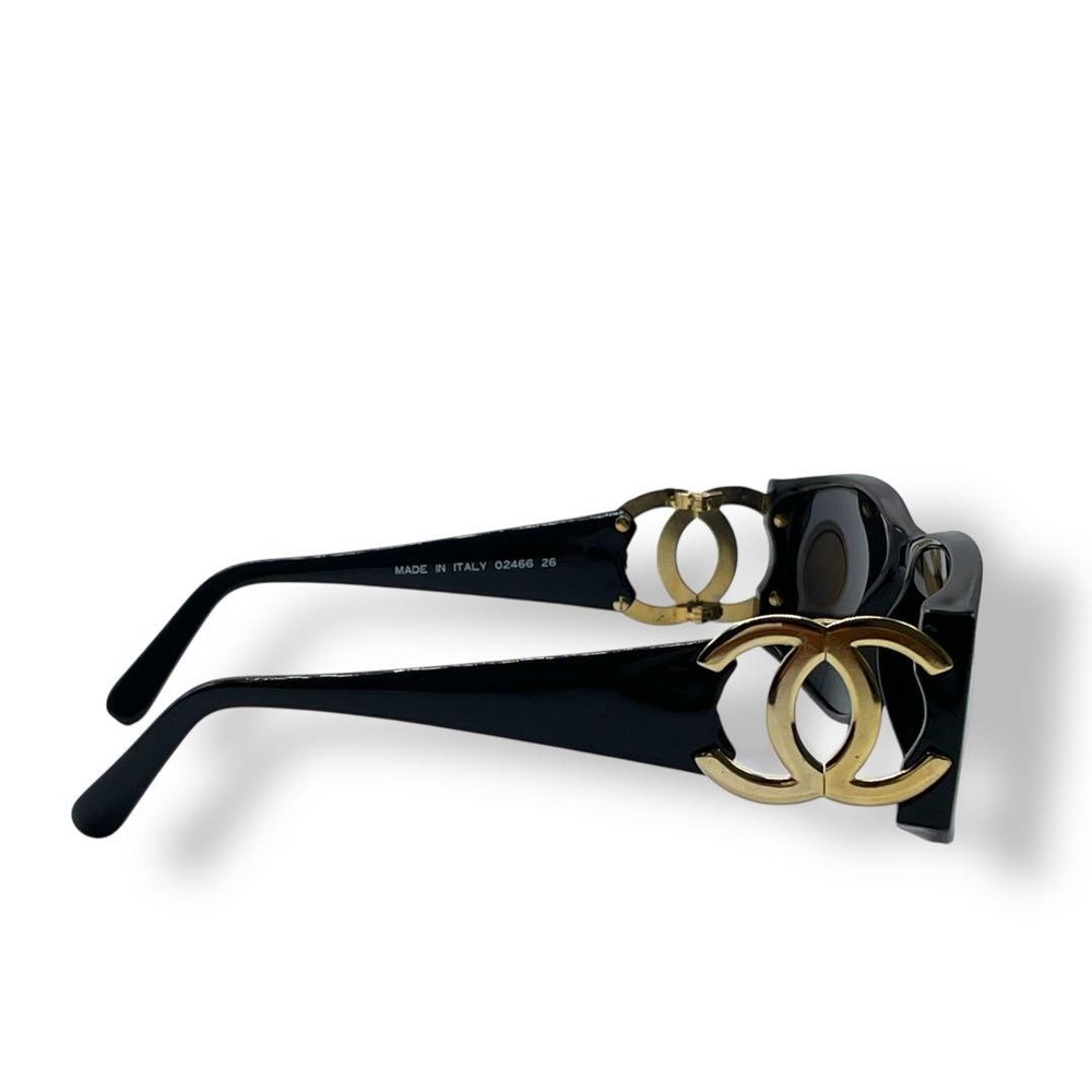 CHANEL Gold Coco Mark Black Sunglasses in Excellent Condition