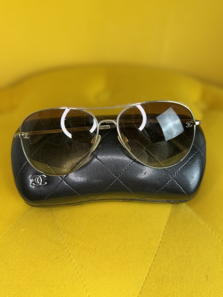 These sunglasses are pure elegance! The gold titanium frame feels lightweight yet durable, and the brown lenses add a chic touch. The iconic CC logo gives them that luxurious CHANEL vibe. Perfect for elevating any outfit, and they come with the box—no scratches, just flawless style. A total wardrobe staple!