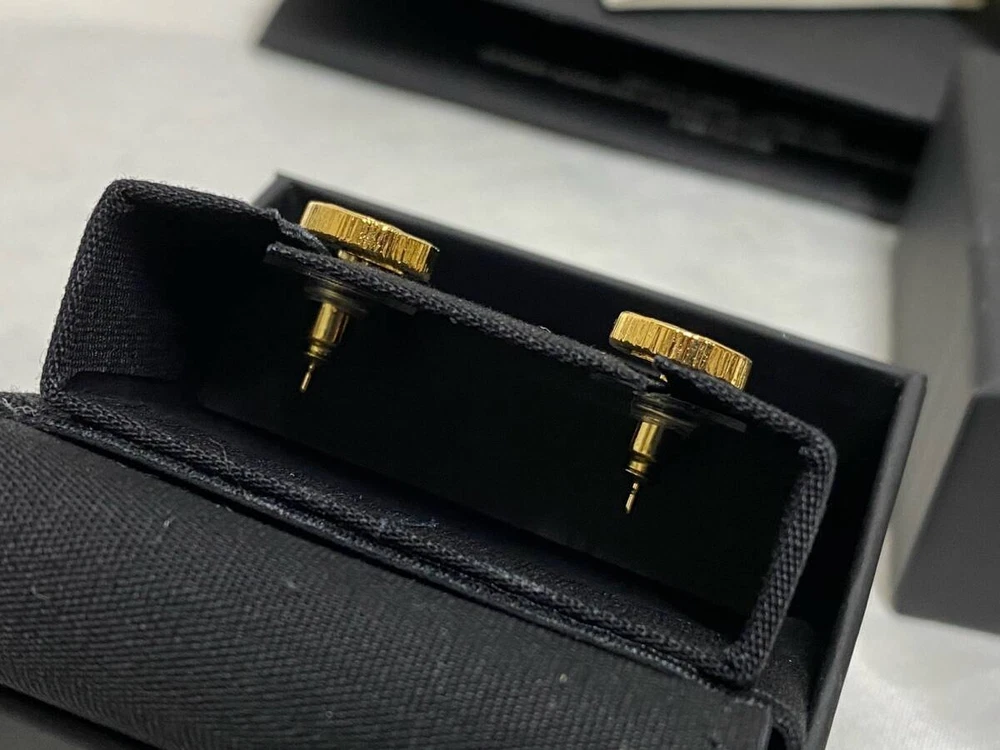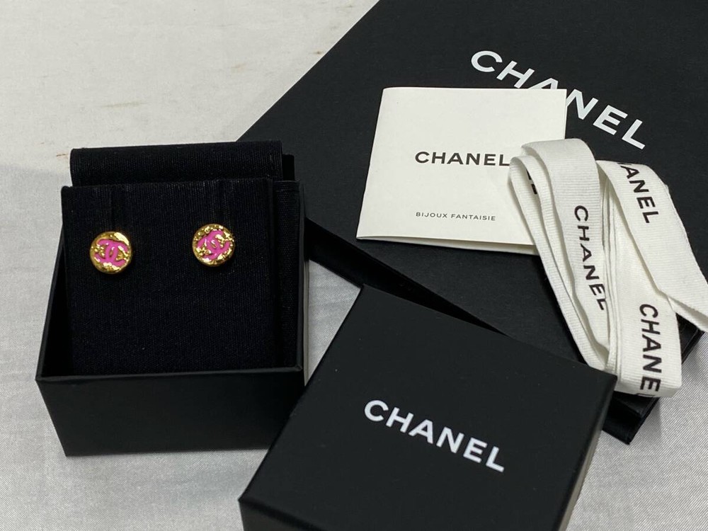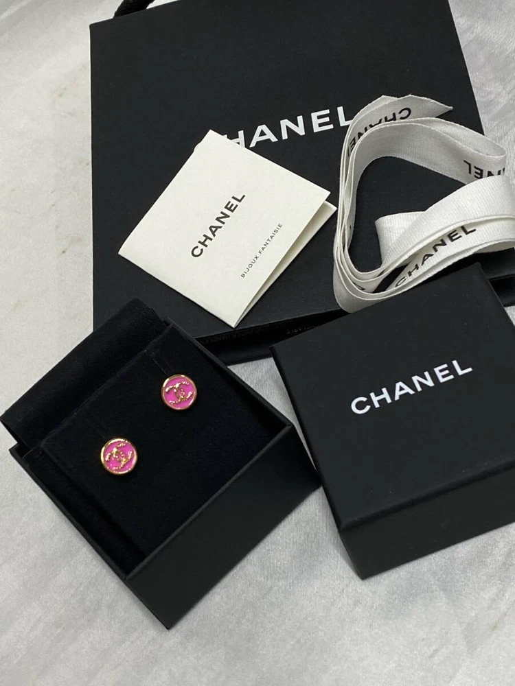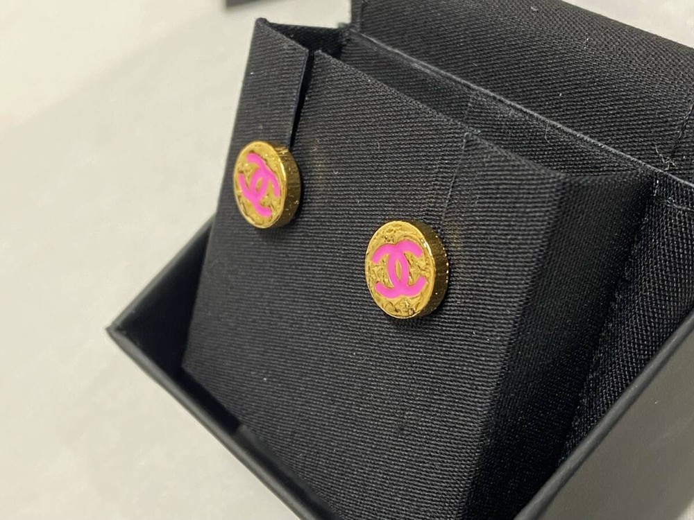 Type: Earrings Color: Gold, Black, Pink Note: This will be shipped by FedEx. Style: Earrings ConditionRank: 7 Material: Hardware Size: None Accessories: Box Case Booklet Serial: F24C Main Stone: None Metal Purity: Unknown Brand: CHANEL
