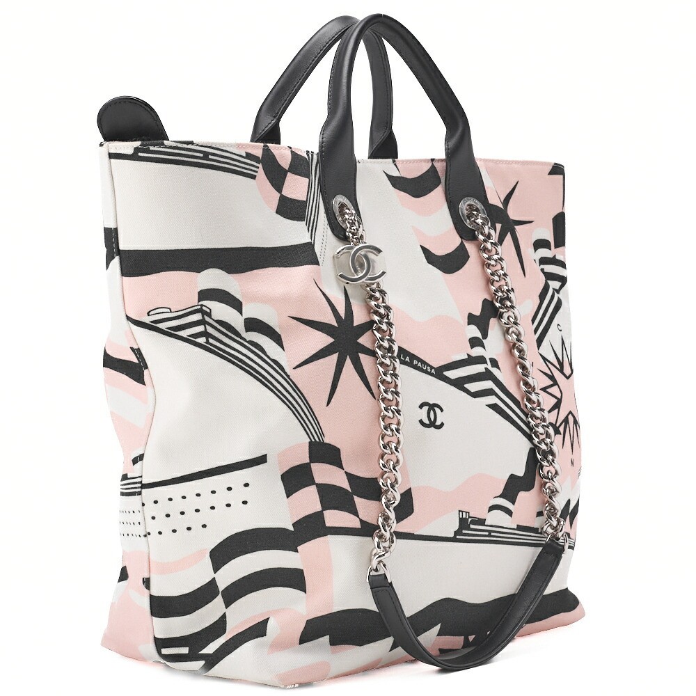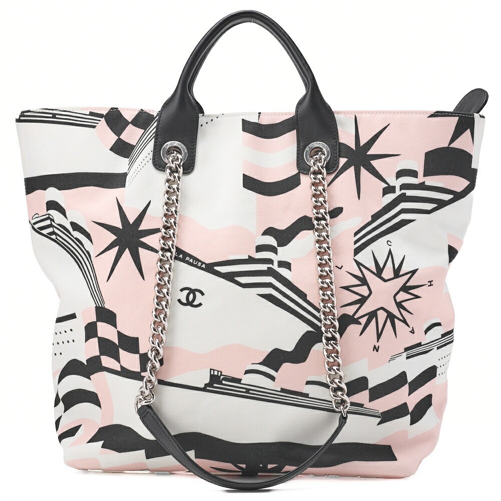 CHANEL Shoulder Bag Tote Cruise Line Coco Charm Chain Canvas Color Silver 29022