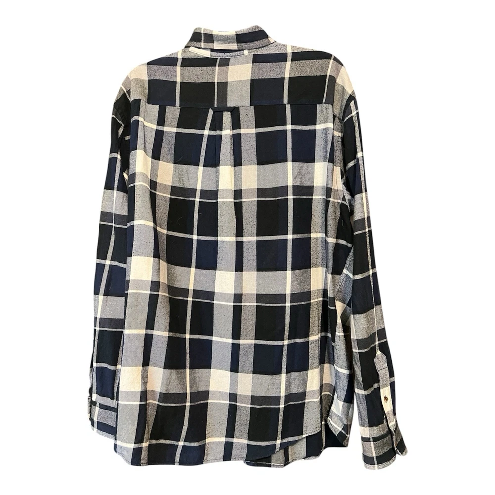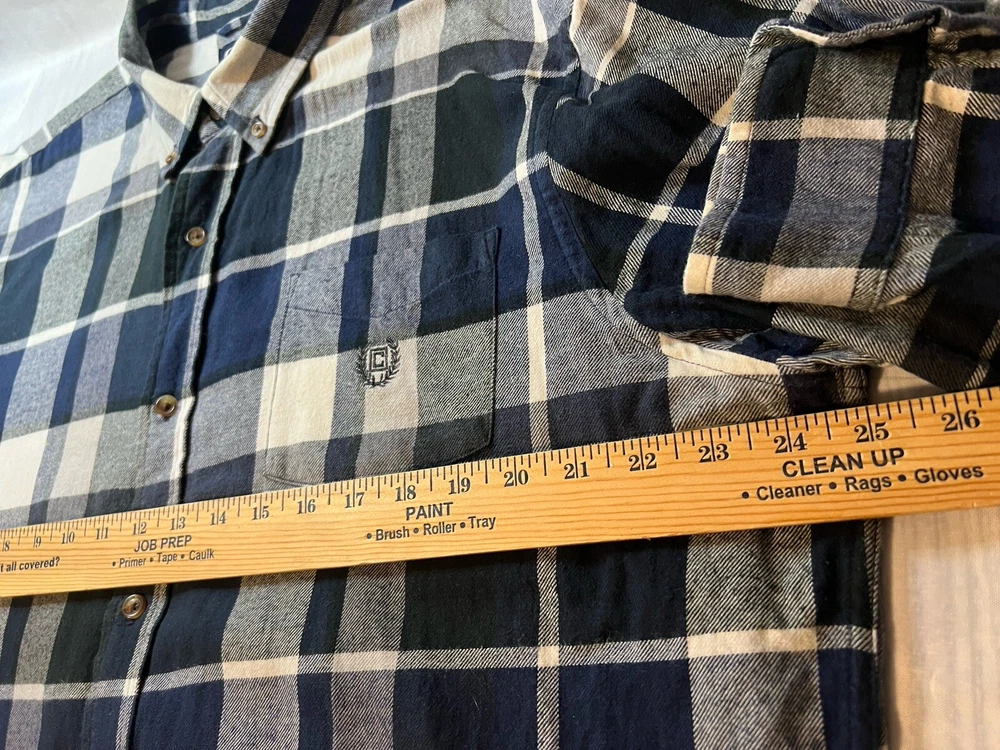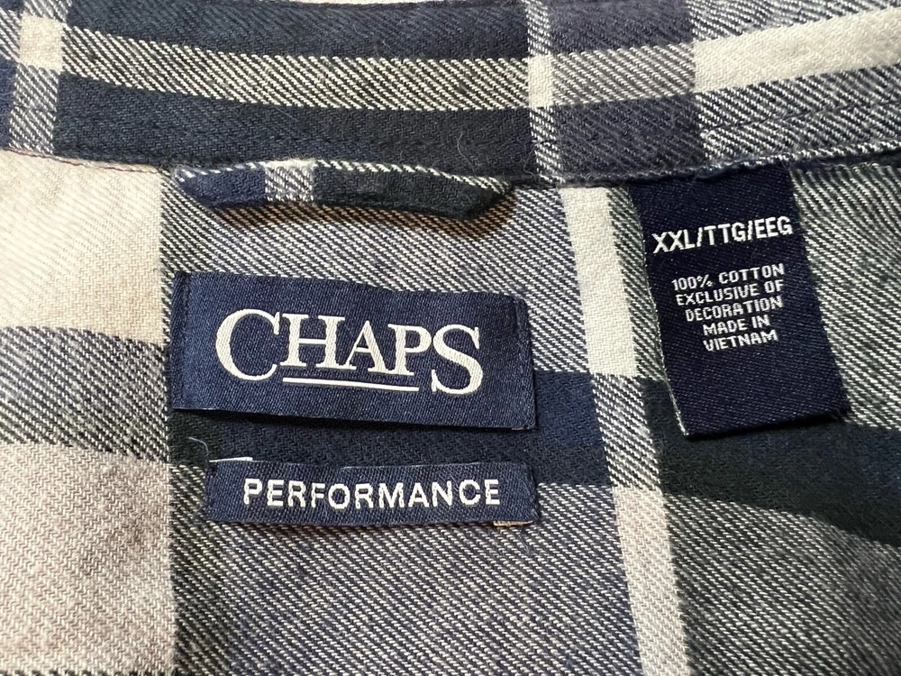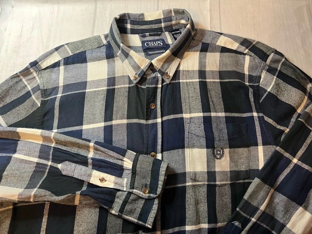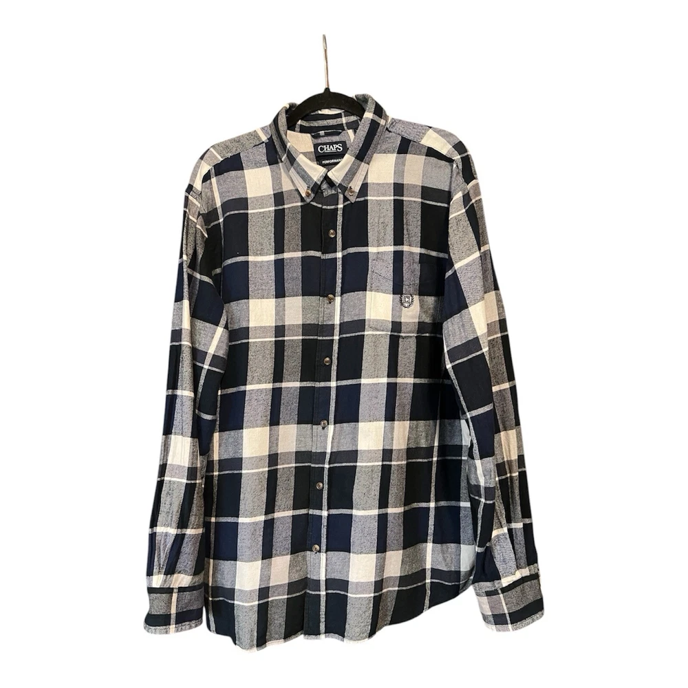 CHAPS Shirt Men Size XXL Performance Flannel Navy Blue/White Plaid lightweight Button Down. New Without tags. See photos for measurements.